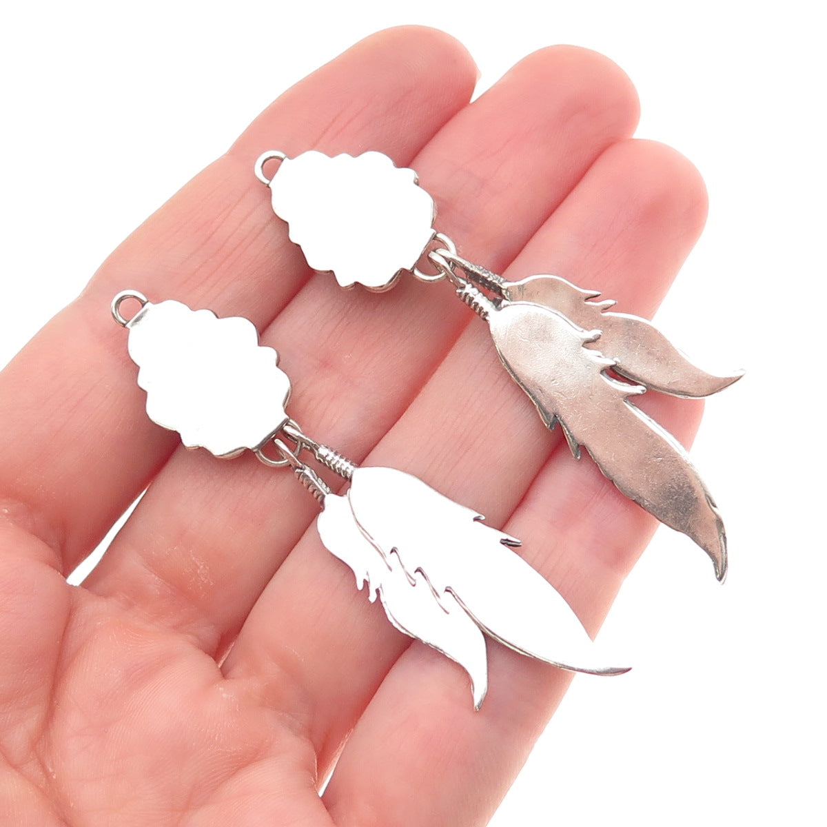 Old Pawn Sterling Silver Vintage Southwestern Black Onyx Feather Jacket Earrings