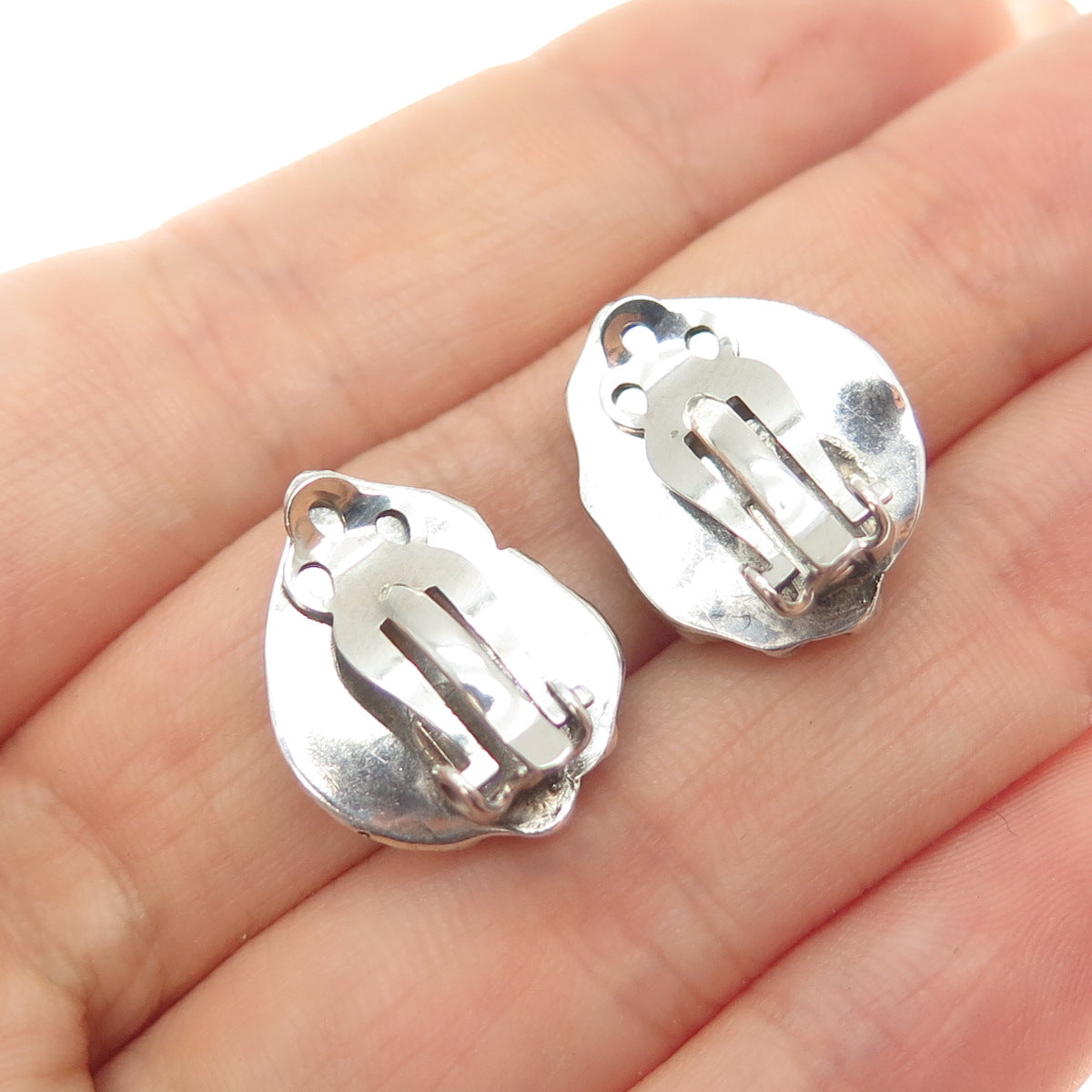 Old Pawn Sterling Silver Vintage Southwestern Turquoise Feather Clip On Earrings