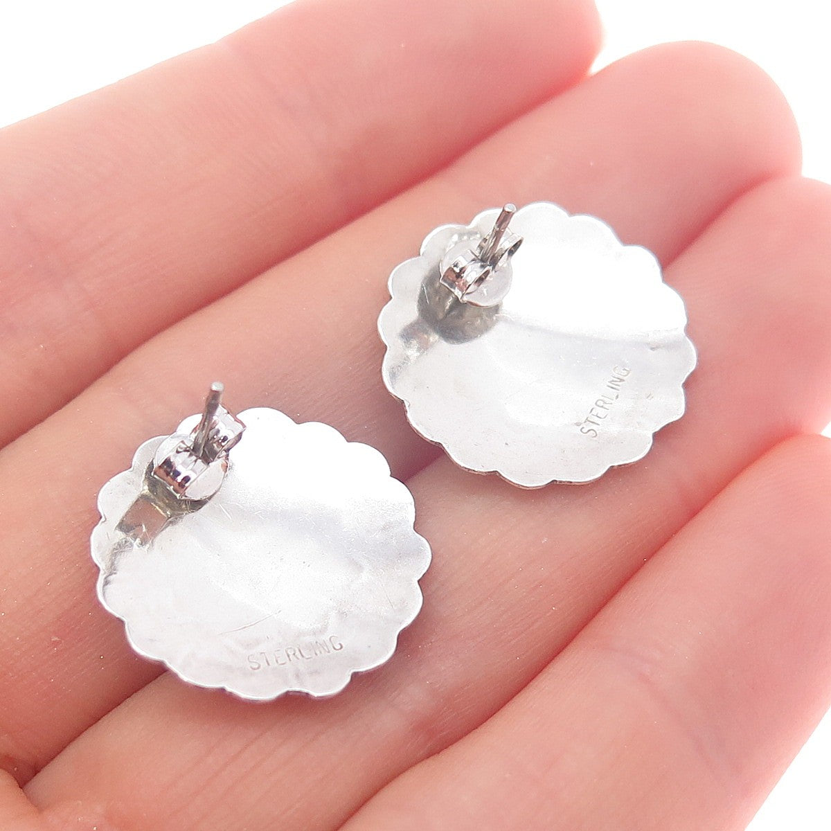 Old Pawn Sterling Silver Vintage Southwestern Turquoise Flower Tribal Earrings