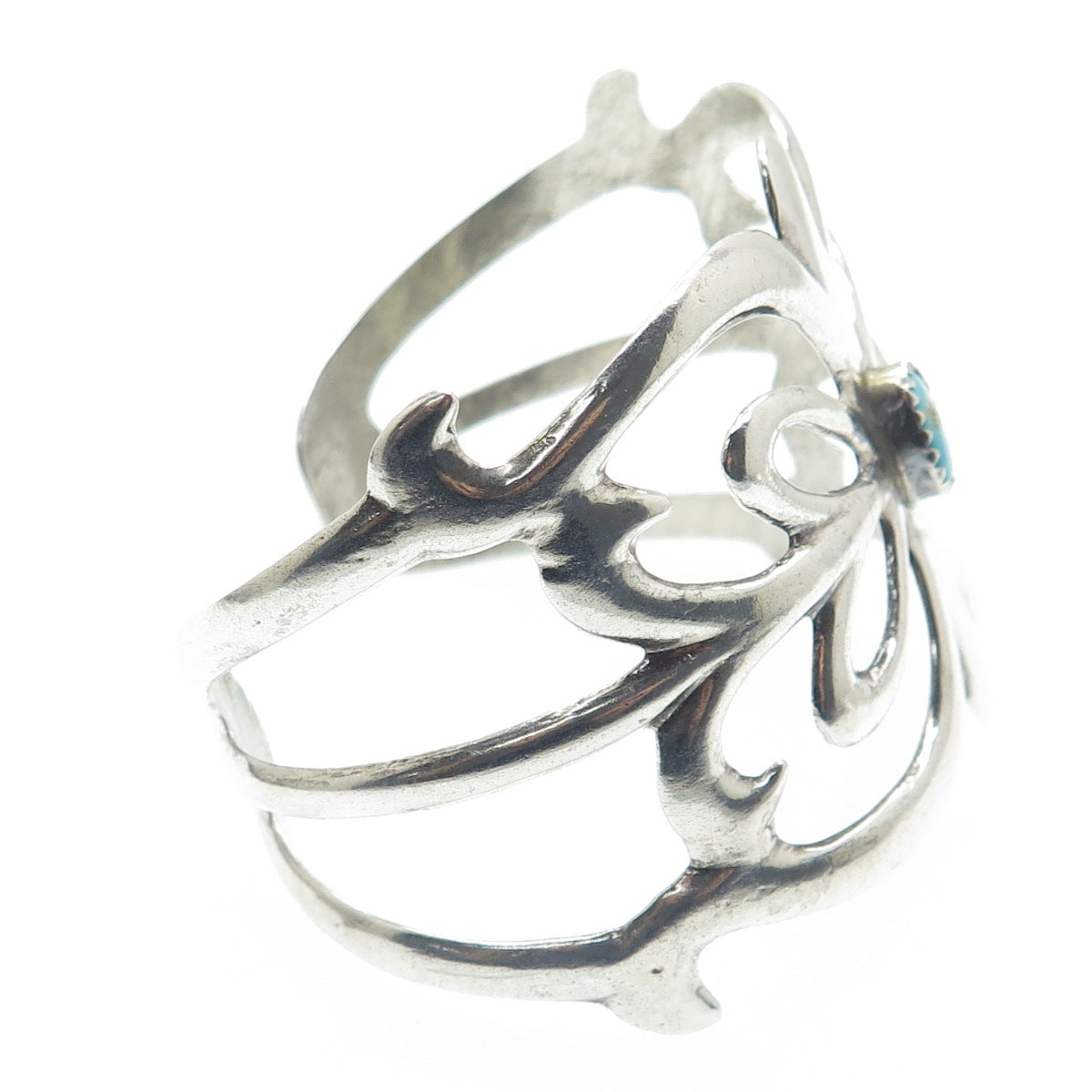 Old Pawn Sterling Silver Vintage Turquoise Butterfly Adjustable Bracelet 6.5"