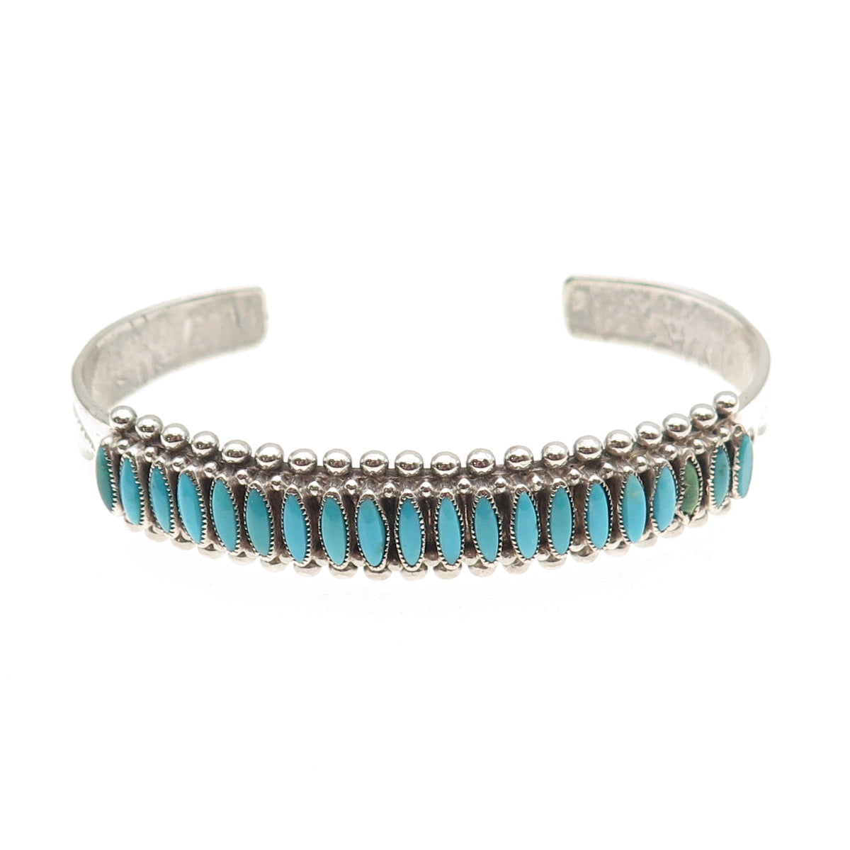 Old Pawn Sterling Silver Vintage Turquoise Needlepoint Adjustable Bracelet 6.25"