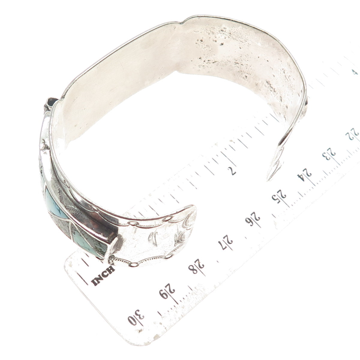 Old Pawn Sterling Vintage Multi-Turquoise Adjustable Watch Band Bracelet 6.5"