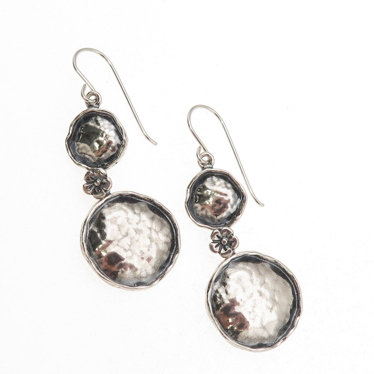 Or Paz PZ 925 Sterling Silver Vintage Israel Hammered Oxidized Dangle Earrings