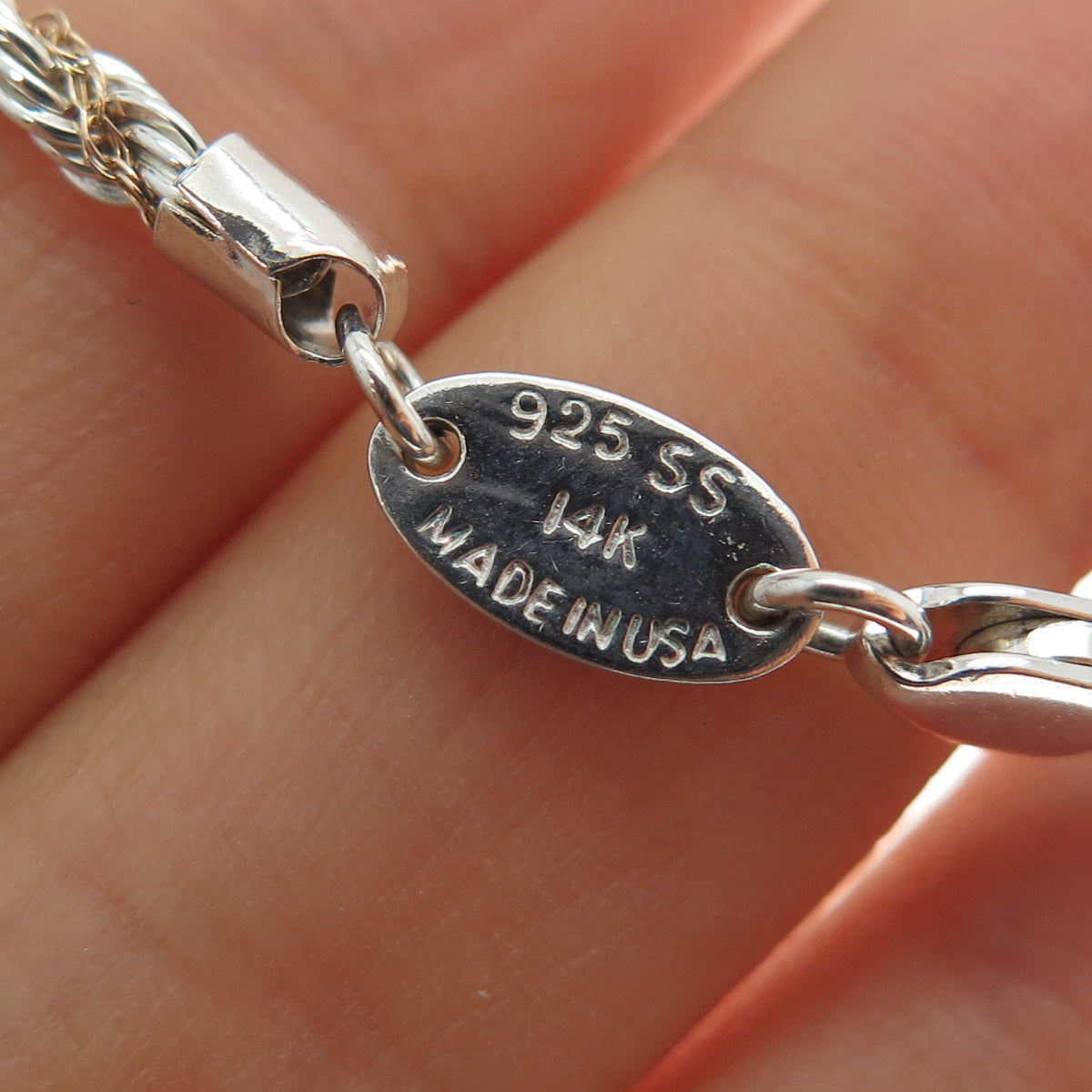 Oroamerica 925 Sterling Silver 14K Gold Vintage Twisted Rope Link Bracelet 7.25"