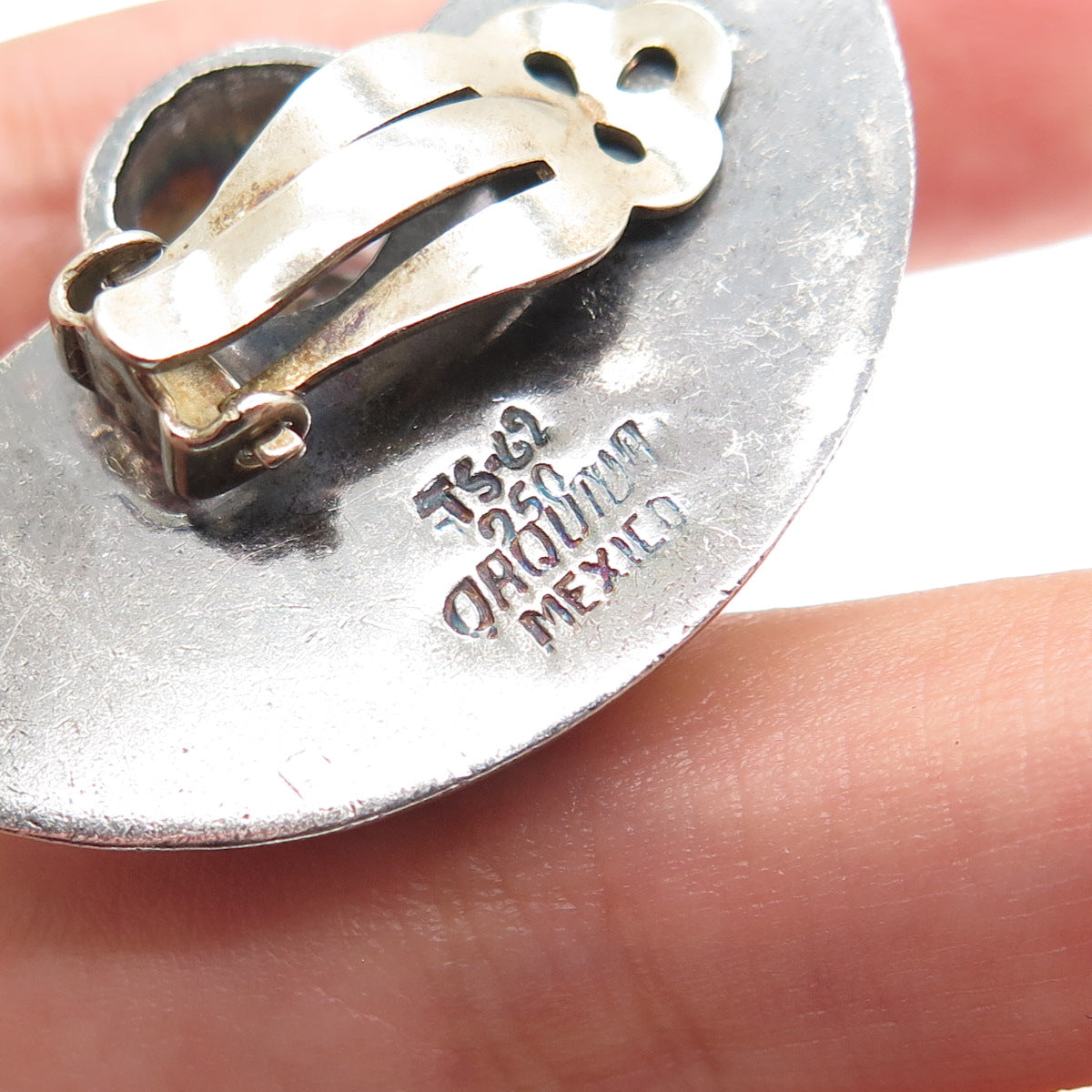 ORQUIDIA 950 Silver Vintage Mexico C Z Modernist Oxidized Clip On Earrings