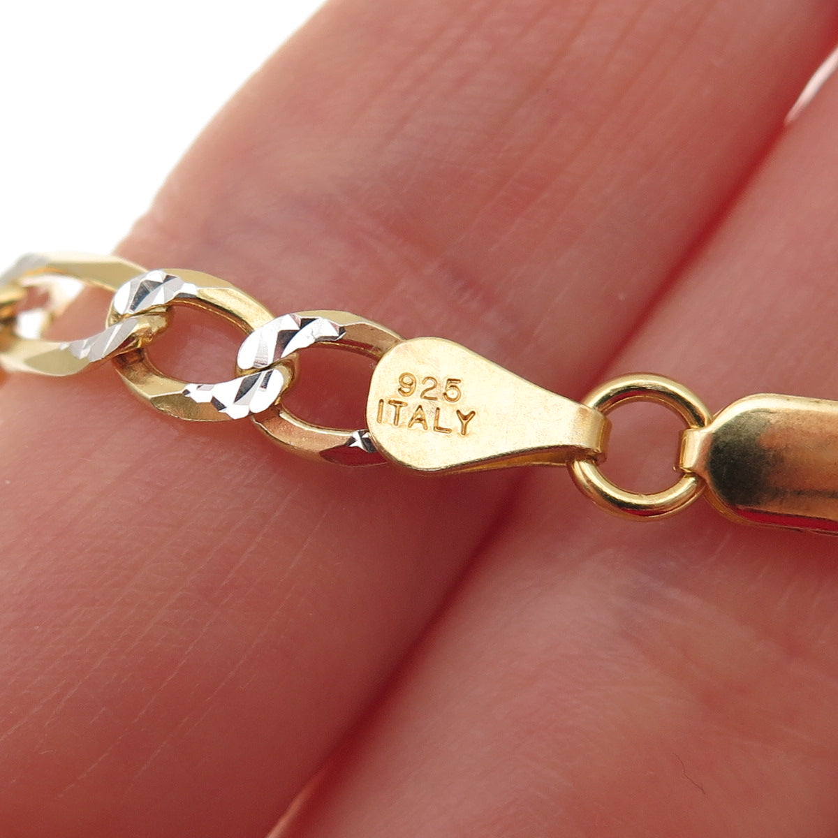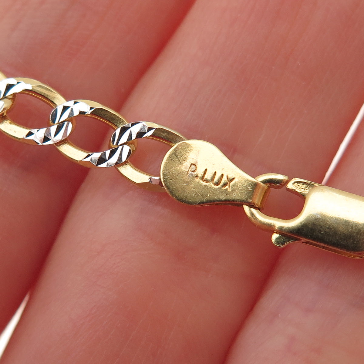 P. LUX 925 Sterling Silver 2-Tone Italy Diamond-Cut Figaro Chain Necklace 20"