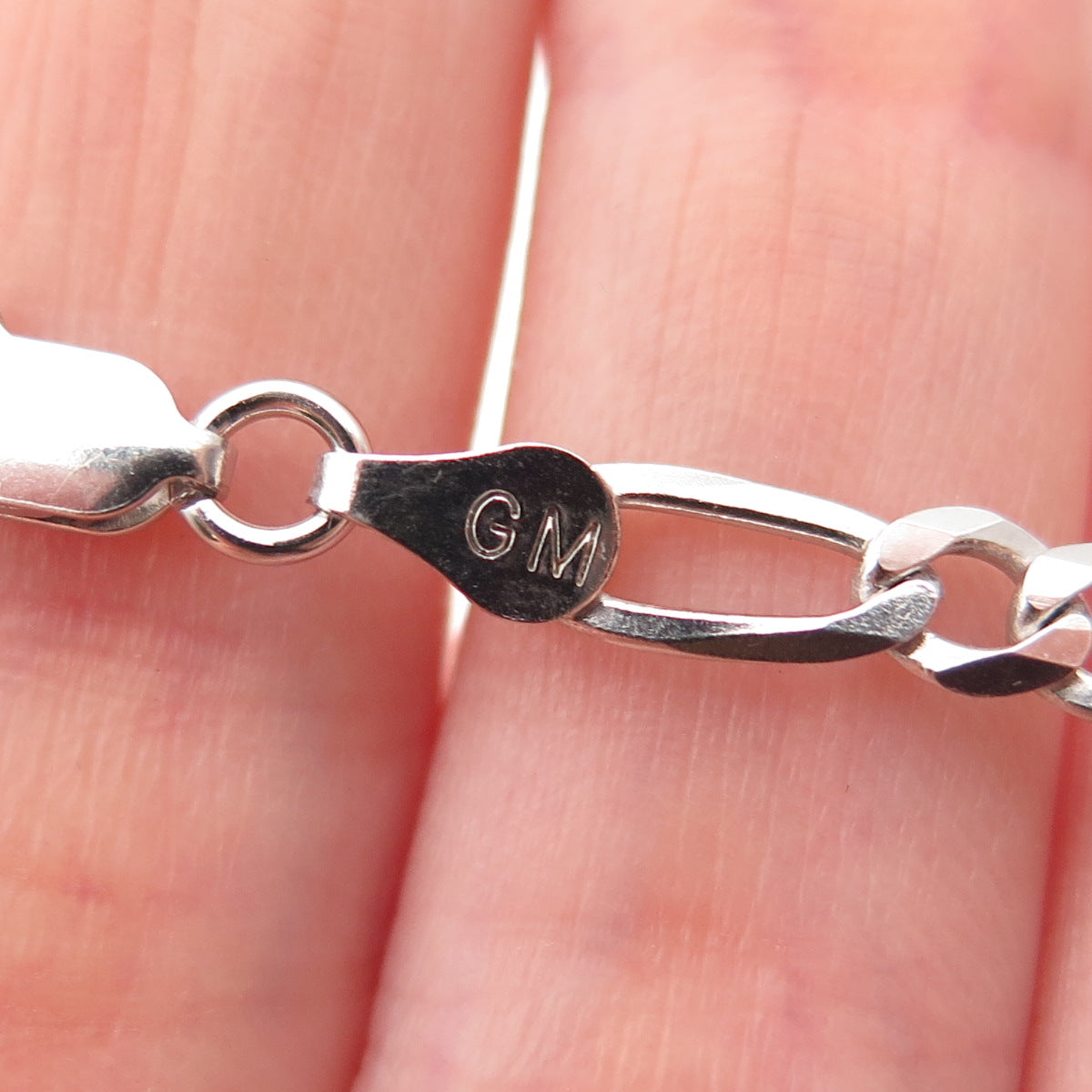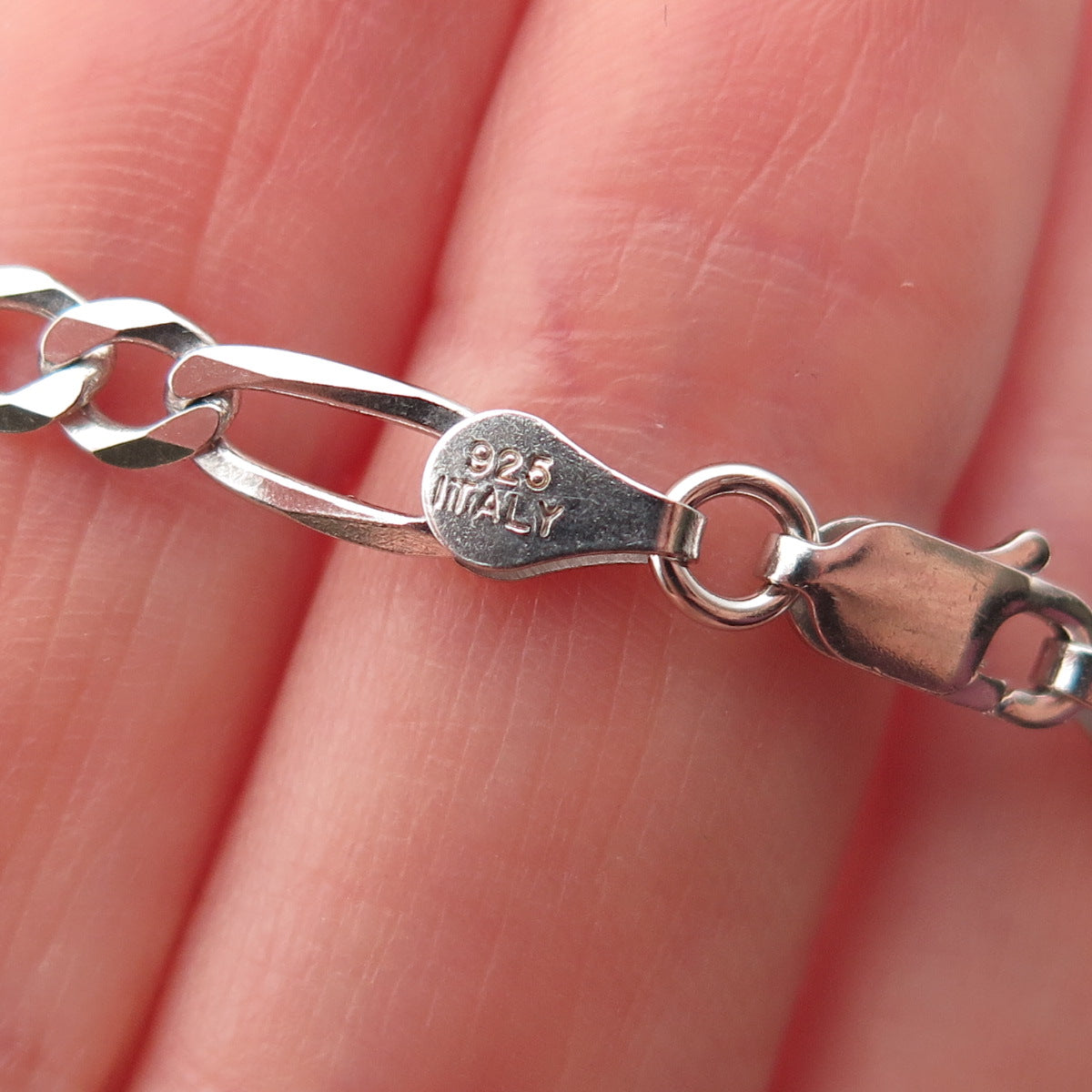 P. LUX 925 Sterling Silver Italy Figaro Chain Necklace 22"