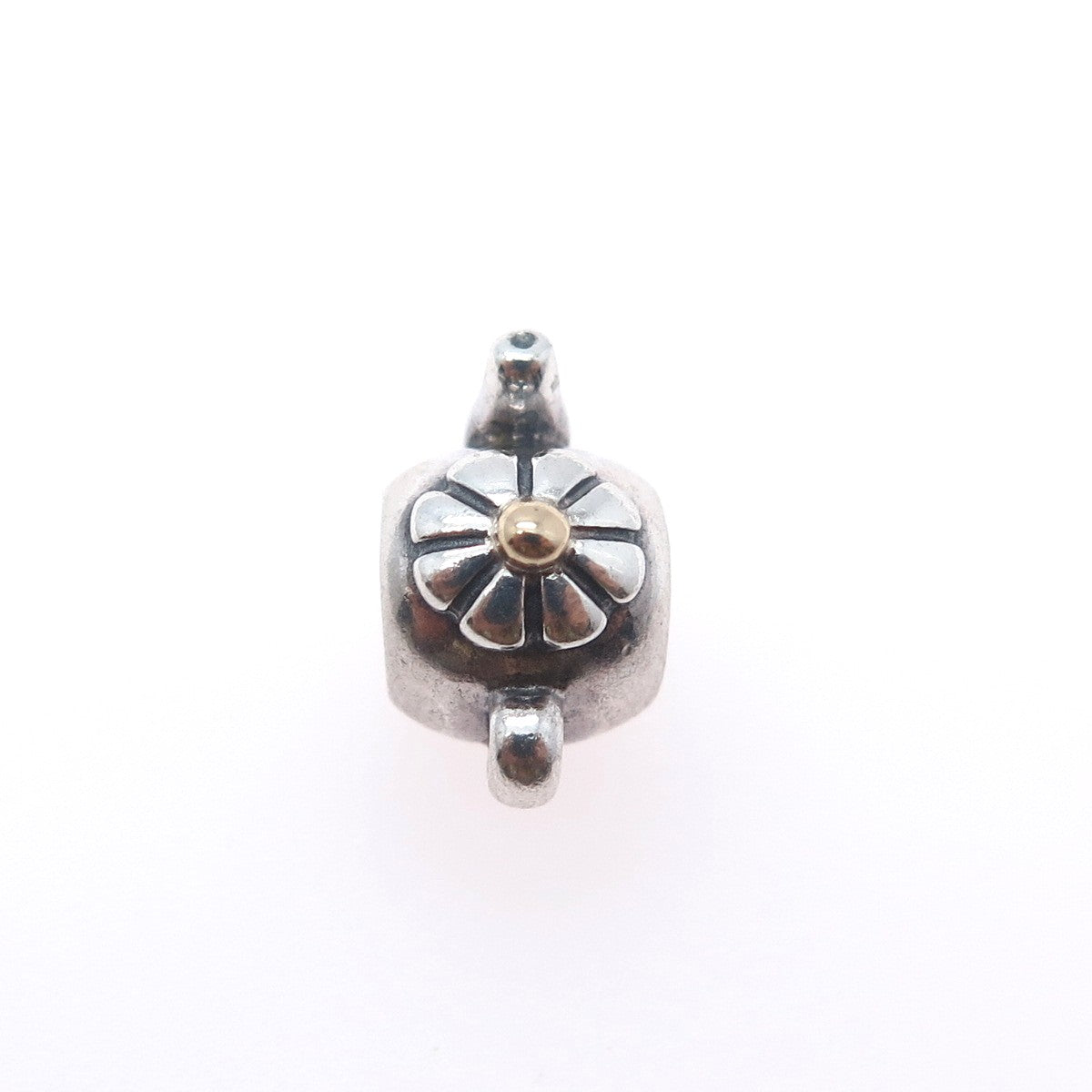 PANDORA 925 Sterling Silver & Gold Teapot Slide Bead Charm