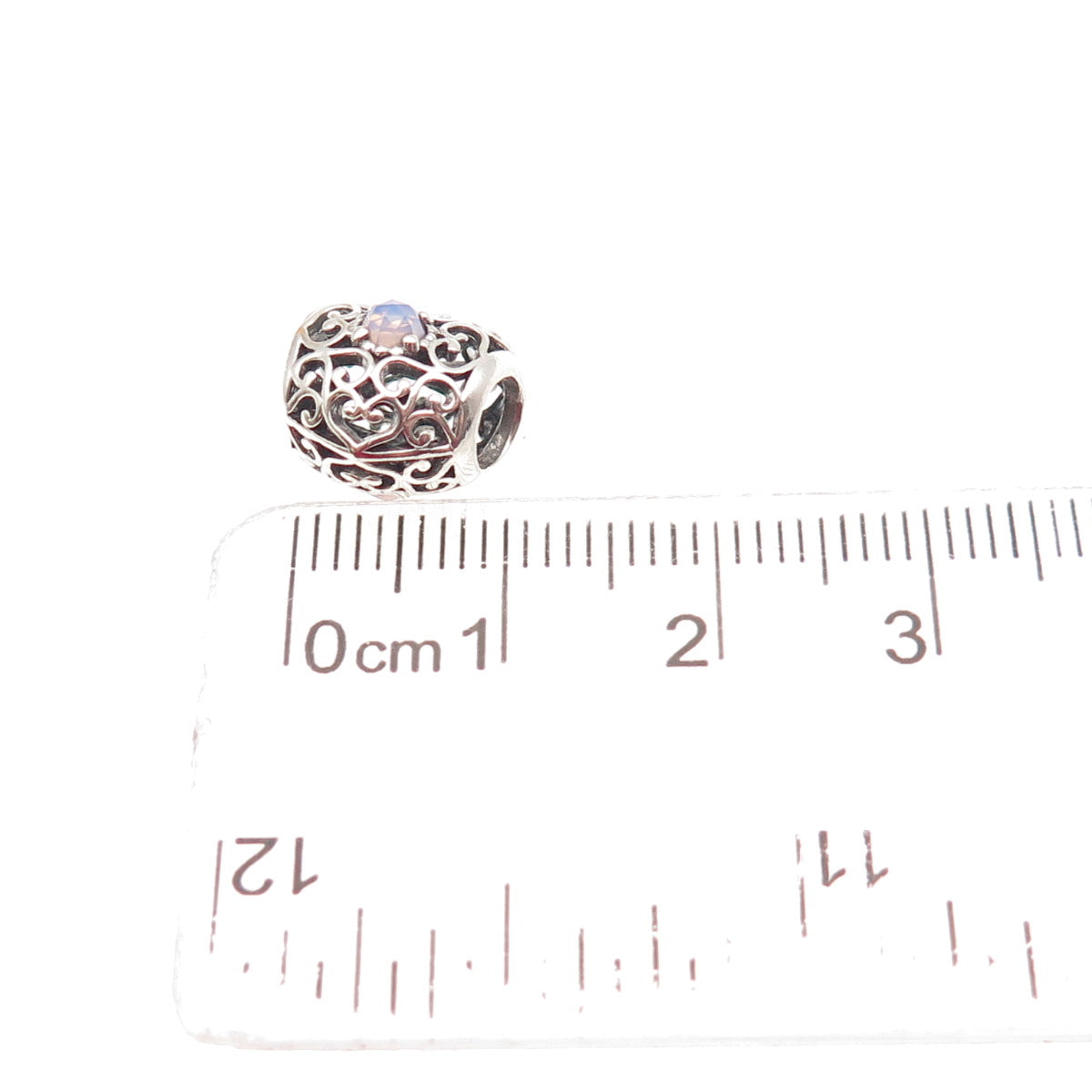 PANDORA Sterling Silver Real Opalite October Signature Heart Slide Bead Charm