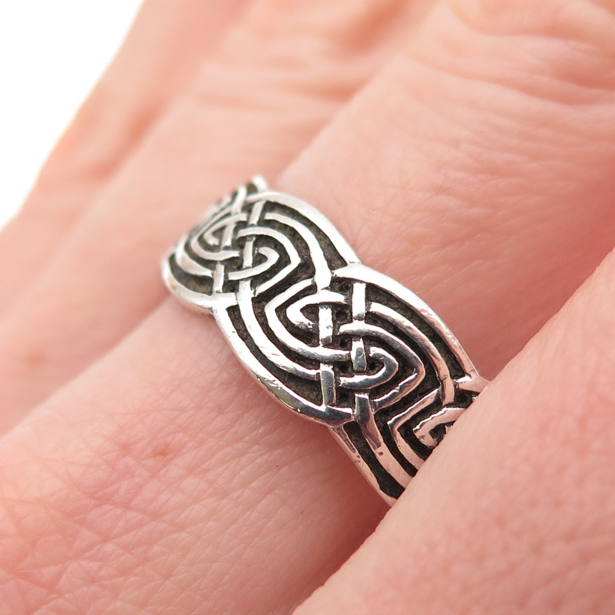 Peter Stone 925 Sterling Silver Vintage Celtic Knot Oxidized Ring Size 10.75