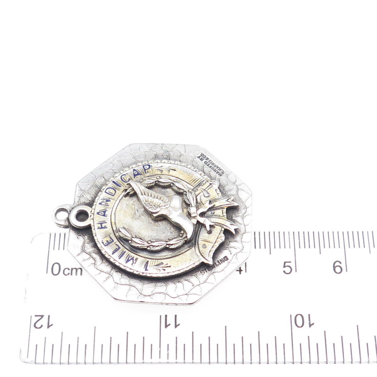 R. Harris & Co 925 Sterling 2-Tone Antique Enamel Marathon 1 Mile Handicap Medal