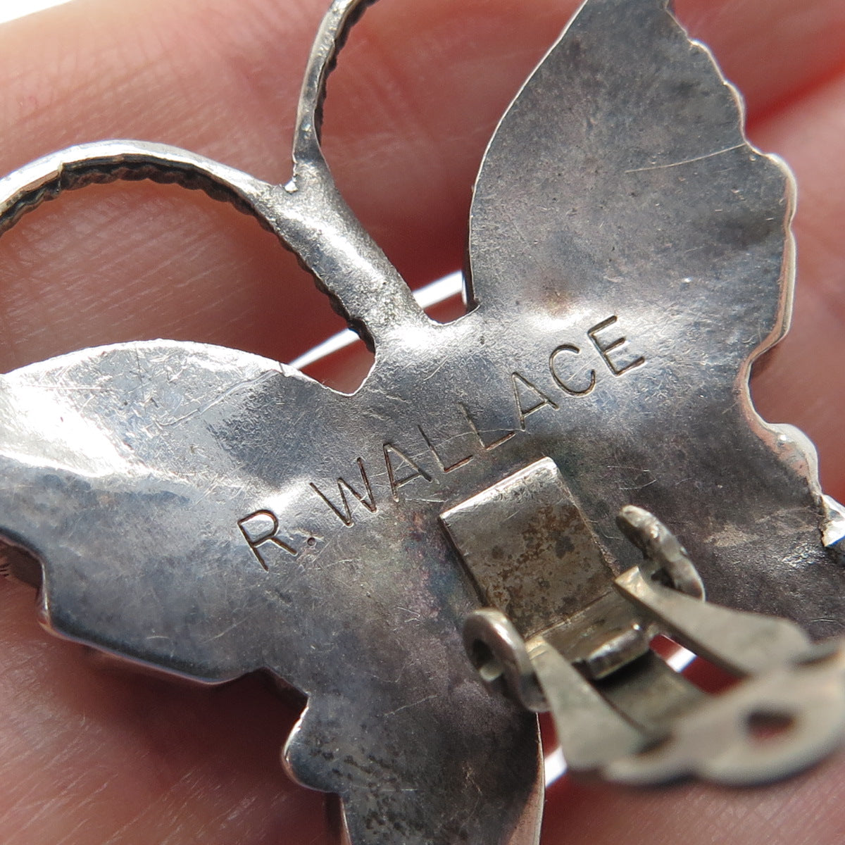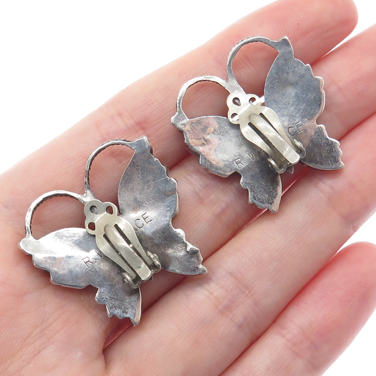 R WALLACE Old Pawn Sterling Opal Turquoise Coral Onyx Butterfly Clip On Earrings