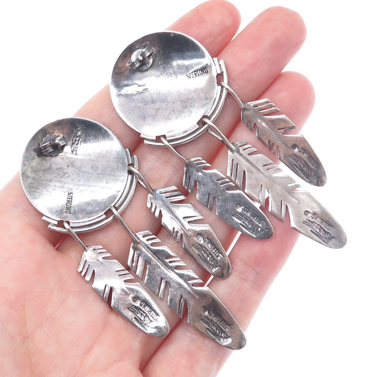 RAY TRACEY & KNIFEWING SEGURA Old Pawn Sterling Silver Feather Tribal Earrings