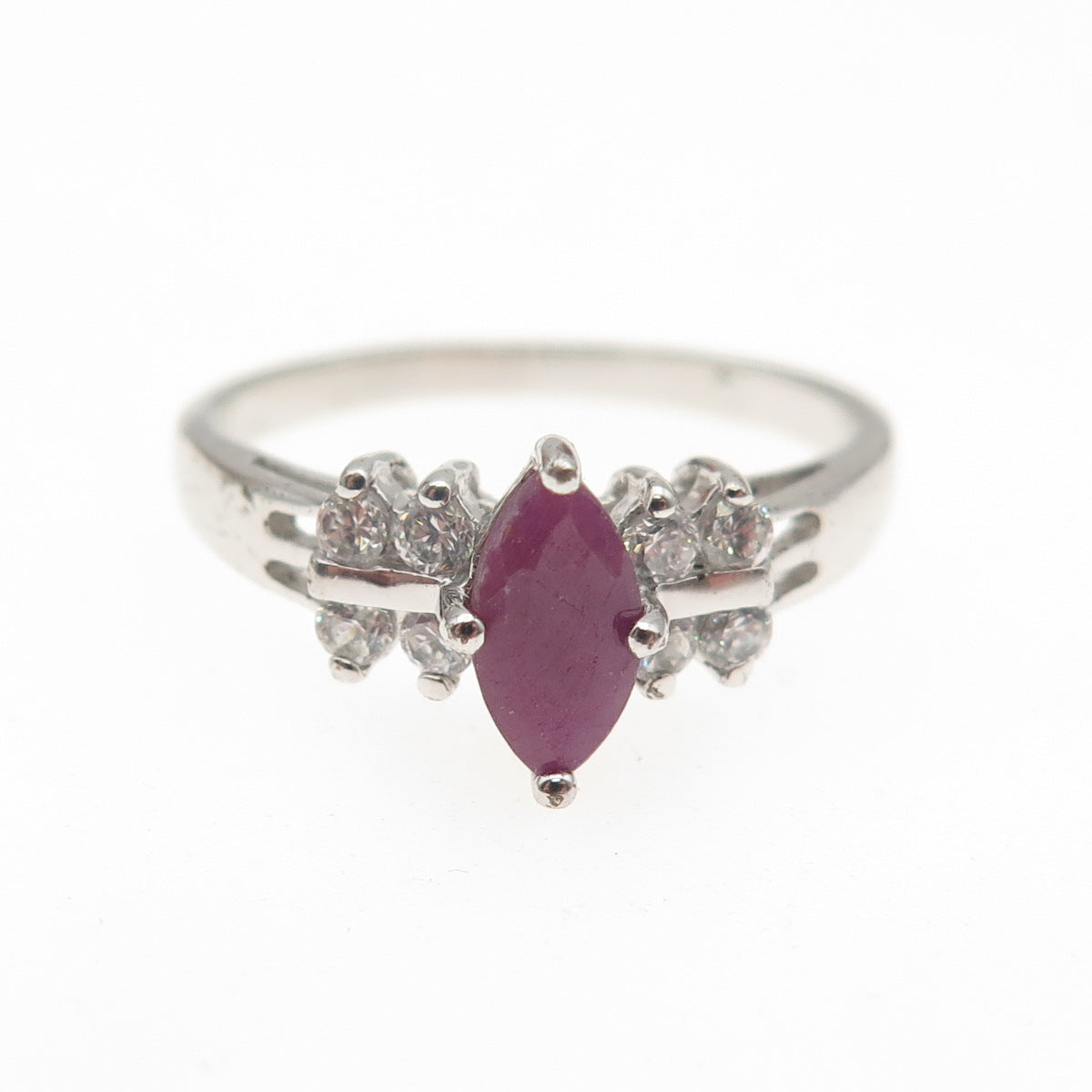 RJ GRAZIANO 925 Sterling Silver Vintage Real Ruby & C Z Ring Size 8