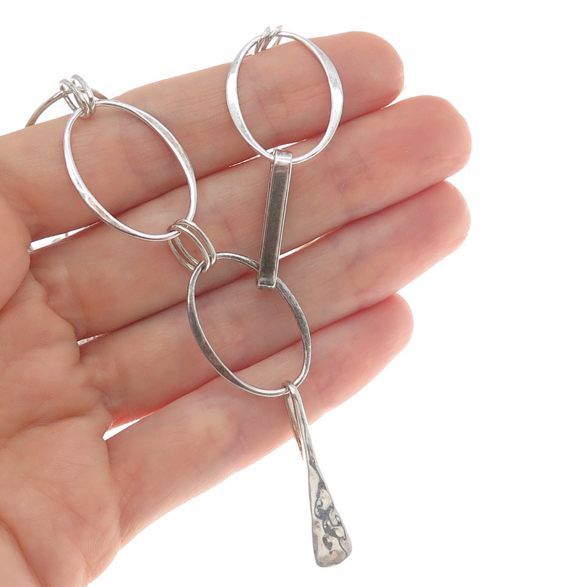 ROBERT LEE MORRIS 925 Sterling Silver Vintage Modernist Oval Chain Necklace 32"
