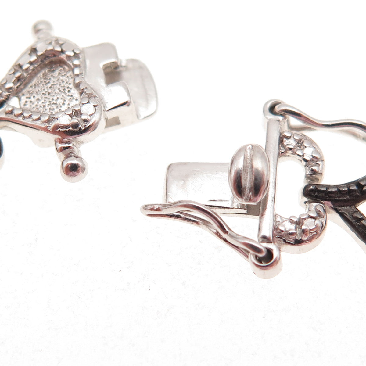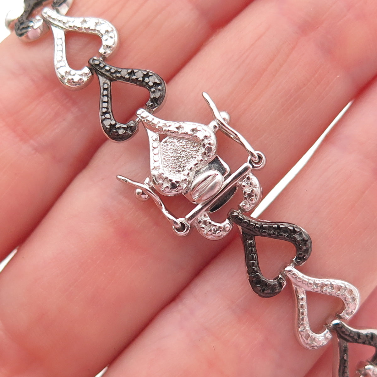 Ross Simons 925 Sterling Black Rhodium Real Diamond Accent Heart Bracelet 7.5"