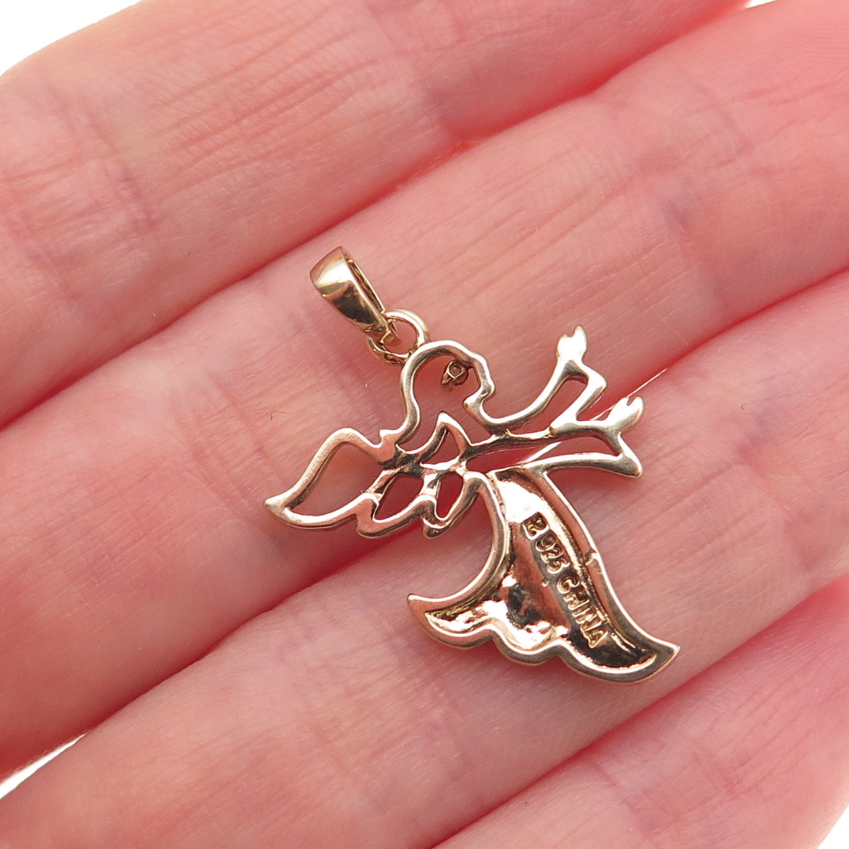 Ross Simons 925 Sterling Silver 2-Tone Real Diamond Accent Angel Charm Pendant