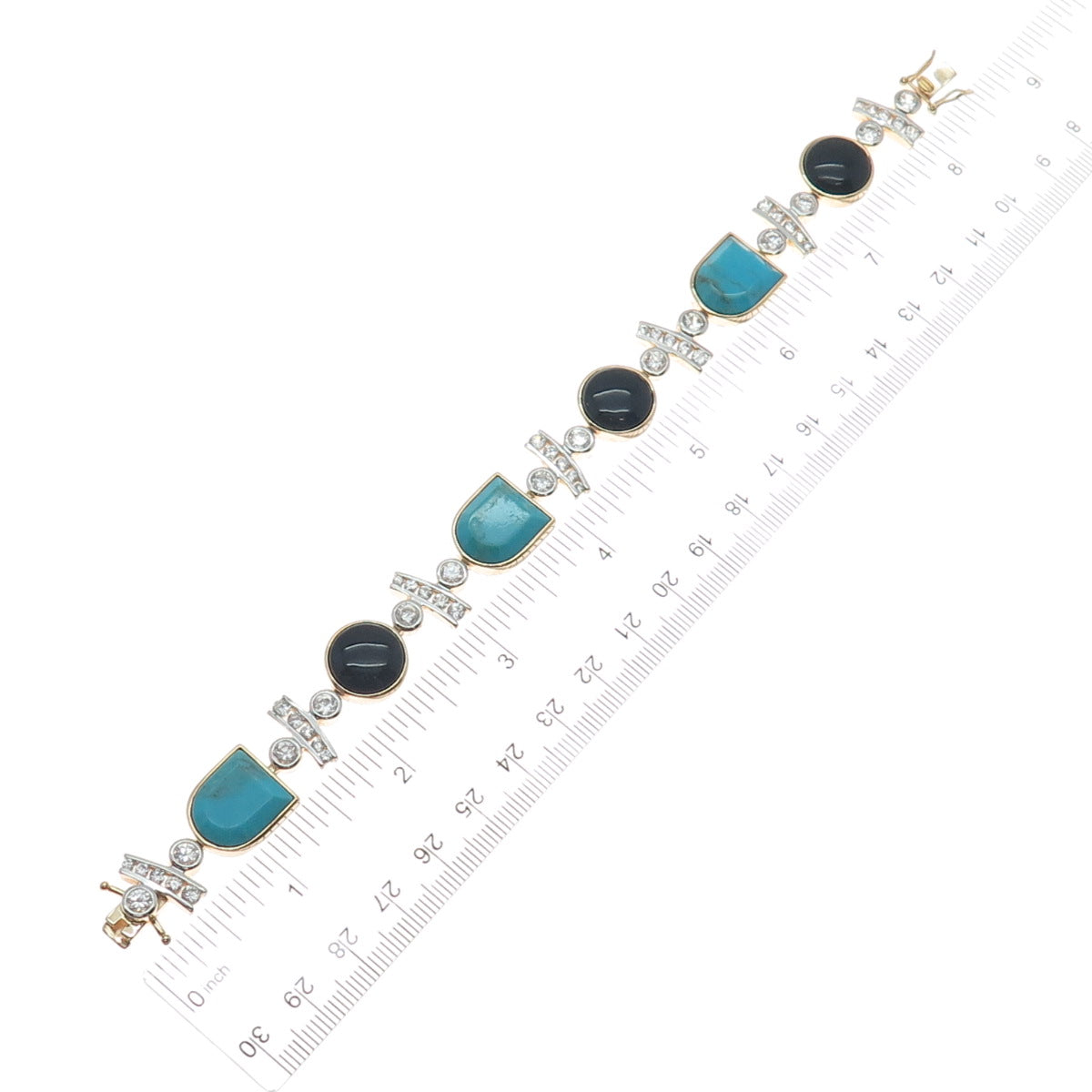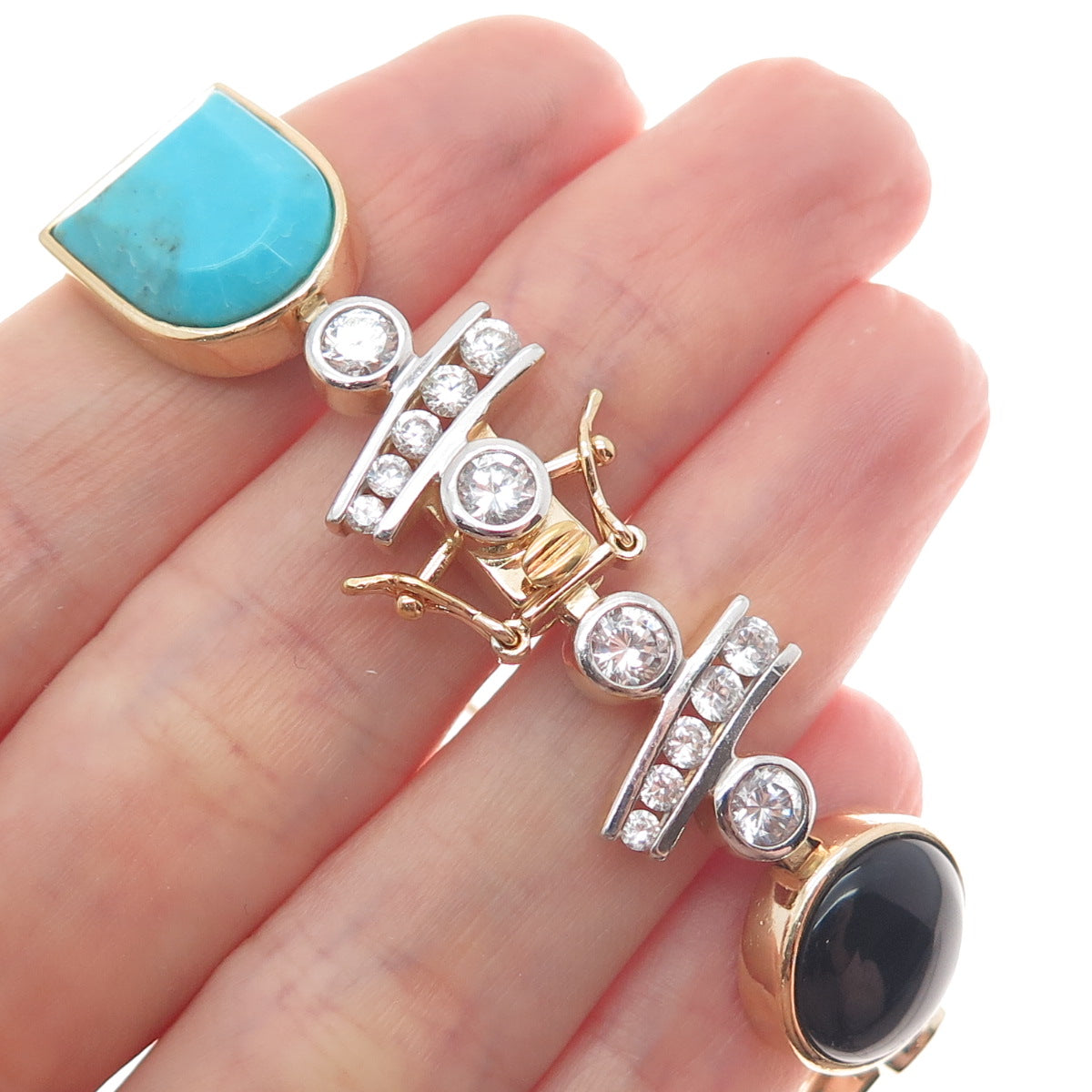 ROSS SIMONS 925 Sterling Silver 2-Tone Real Turquoise Onyx & C Z Bracelet 8"