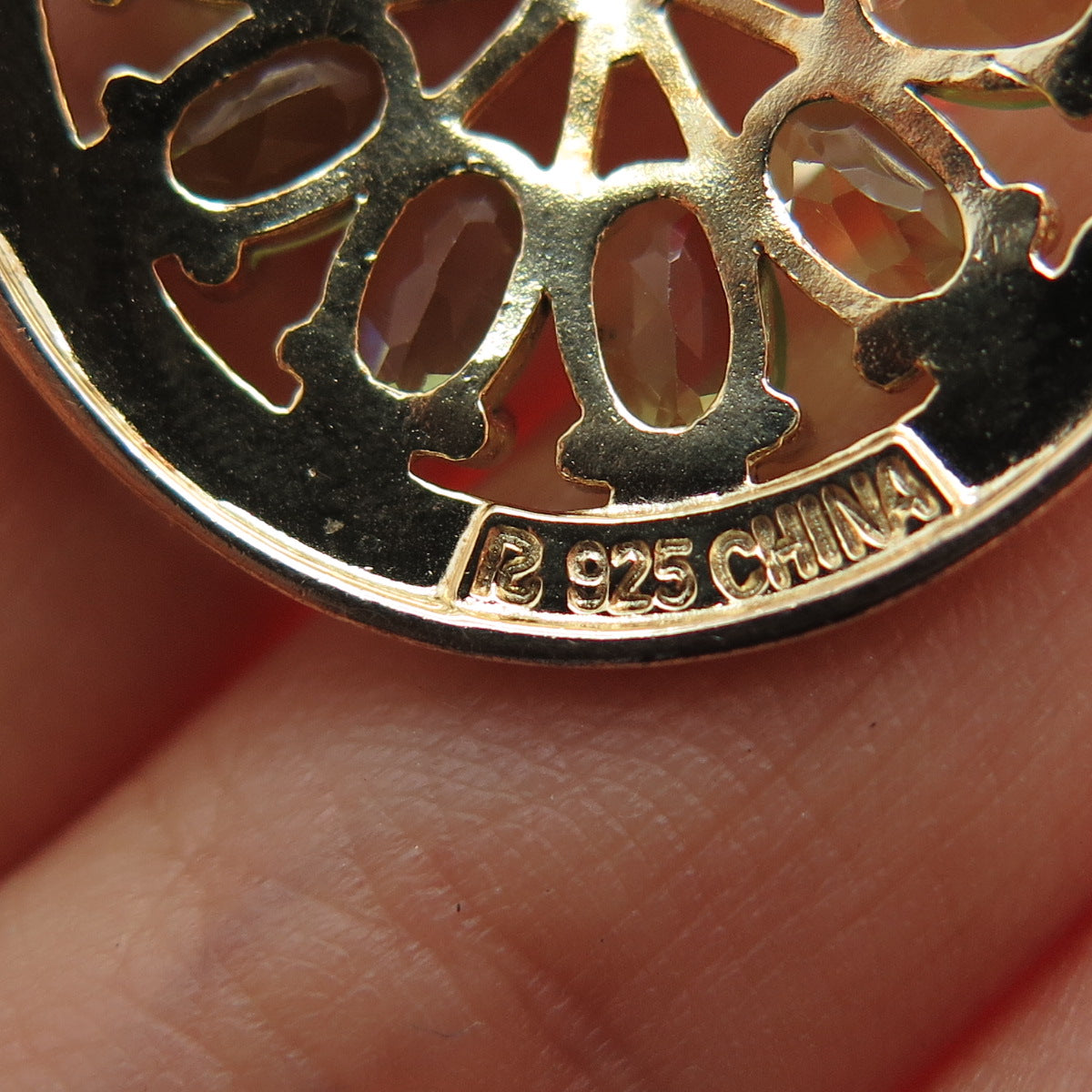 ROSS SIMONS 925 Sterling Silver Gold Plated Real Diamond Accent Peridot Pendant