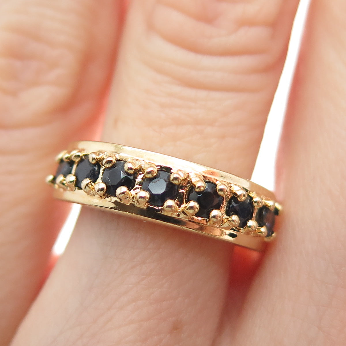 ROSS SIMONS 925 Sterling Silver Gold Plated Real Sapphire Gem Ring Size 5.25