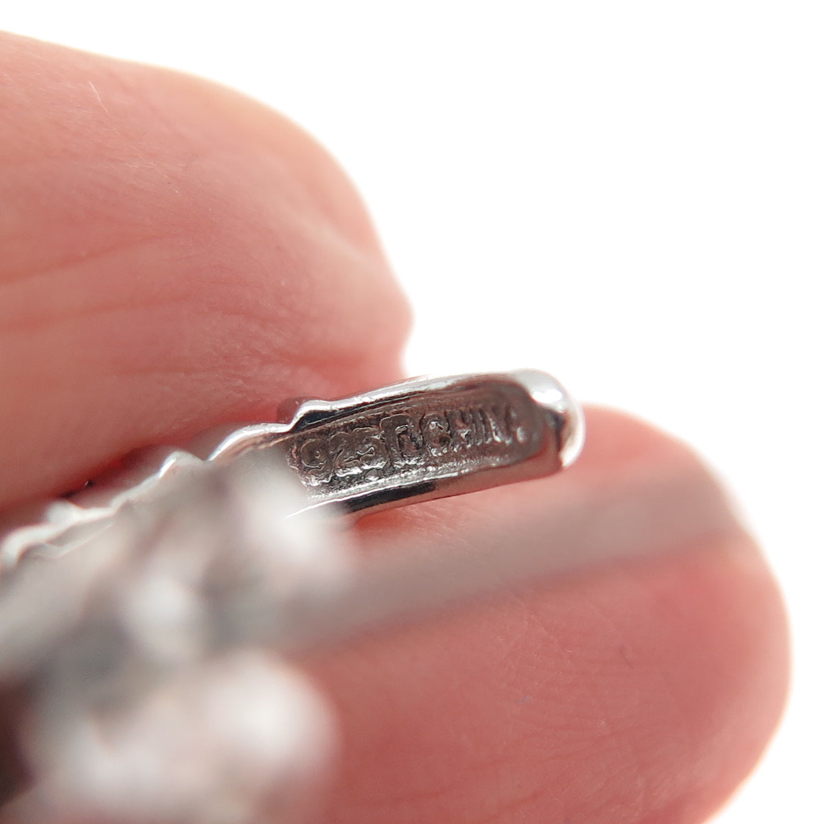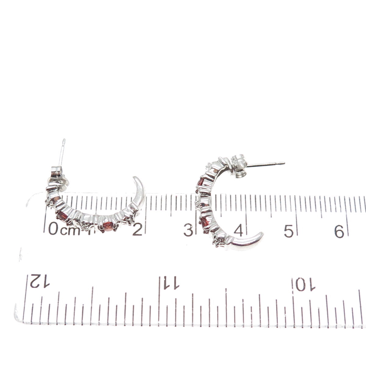 ROSS SIMONS 925 Sterling Silver Real Diamond & Red Garnet Half Hoop Earrings