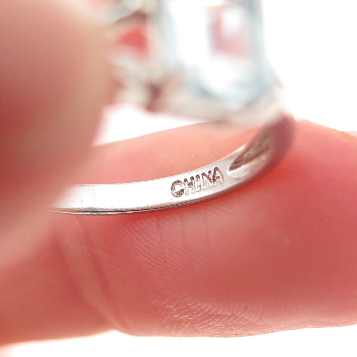 Ross Simons 925 Sterling Silver Vintage Real Emerald-Cut Blue Topaz Ring Size 8