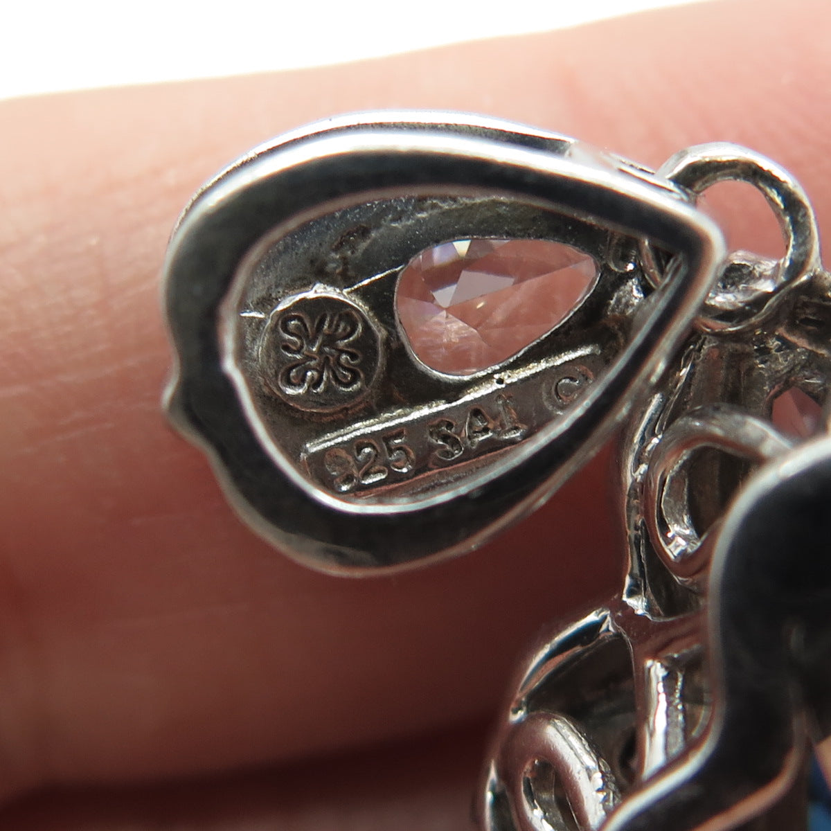 SAI 925 Sterling Silver Oval Round & Pear-Cut Blue White C Z Floral Pendant