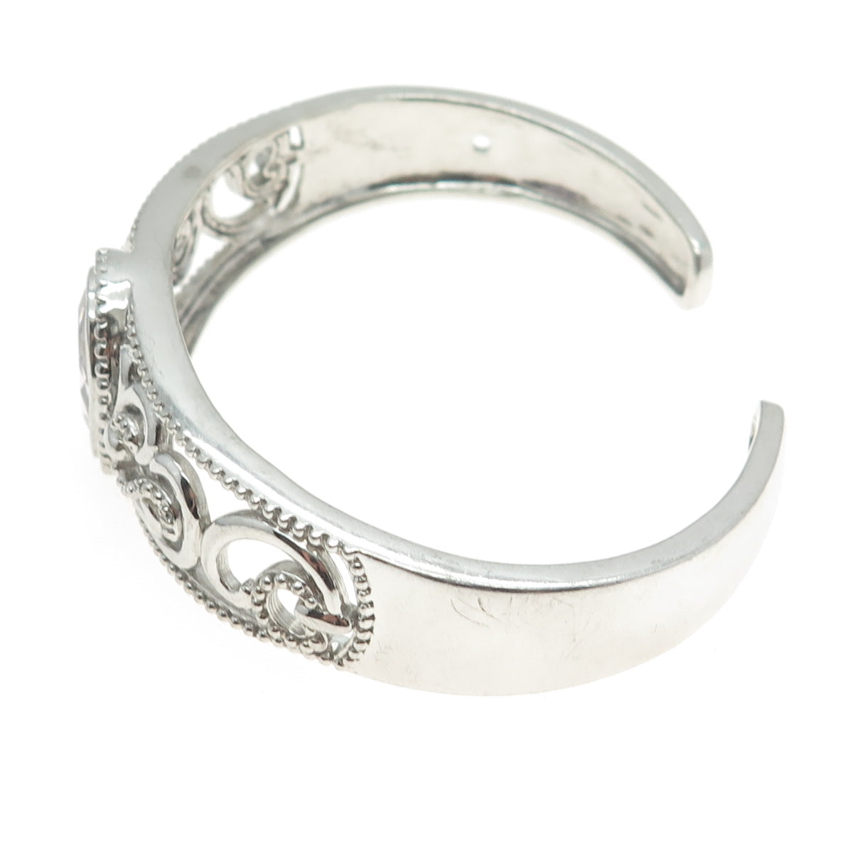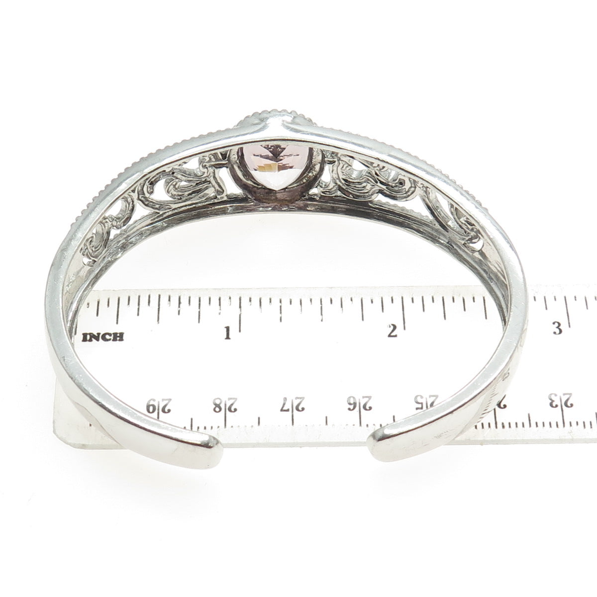 SAI 925 Sterling Silver Real Amethyst & C Z Swirl Adjustable Cuff Bracelet 7.25"