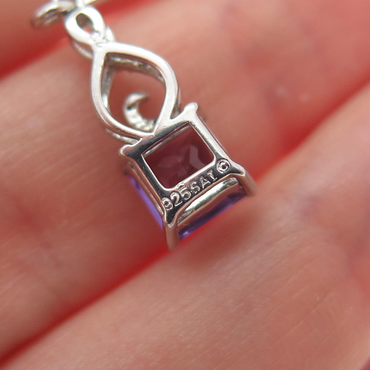 SAI 925 Sterling Silver Real Amethyst & C Z Treble Clef Dangle Earrings