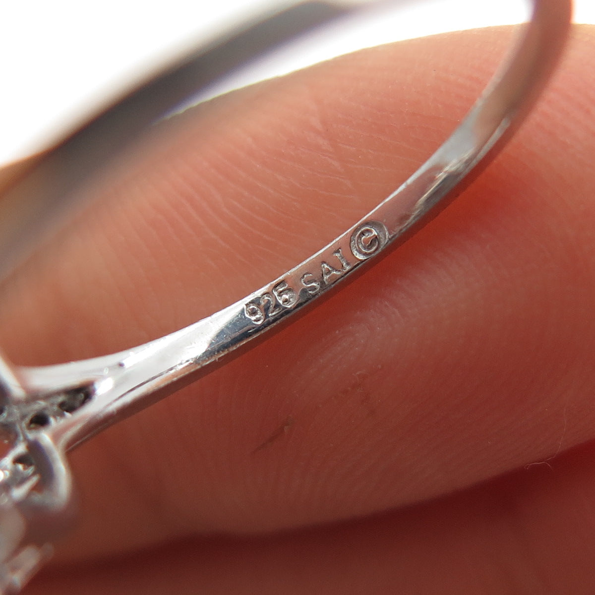 SAI 925 Sterling Silver Real Diamond & Blue Topaz Ring Size 7