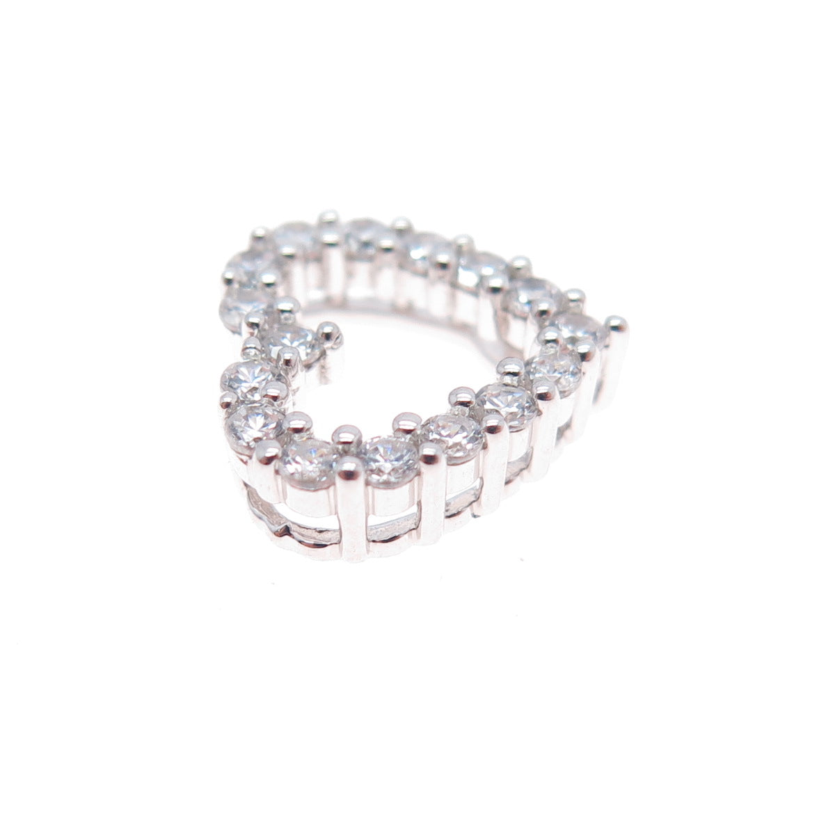 SAI 925 Sterling Silver Round-Cut C Z Heart Minimalist Slide Charm Pendant