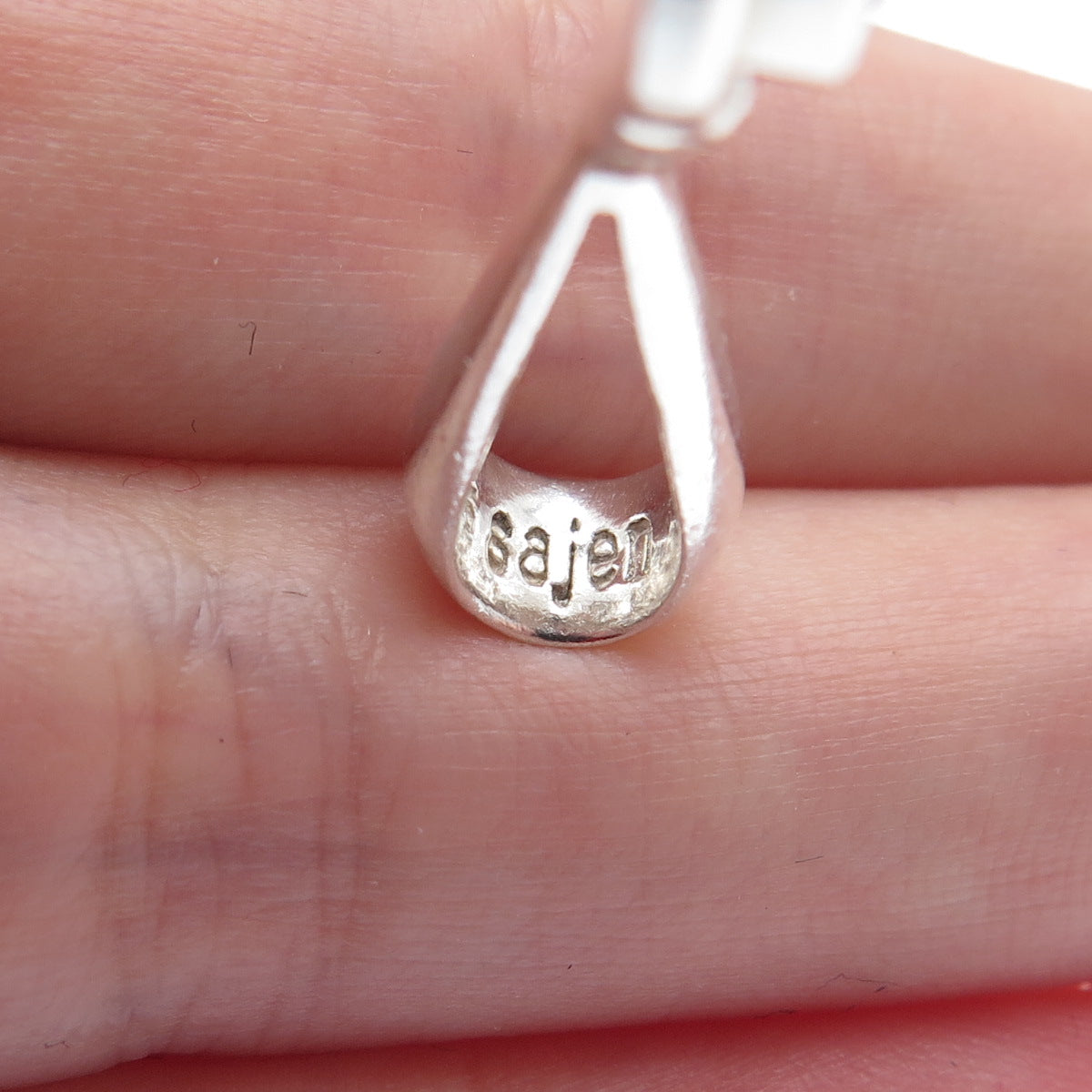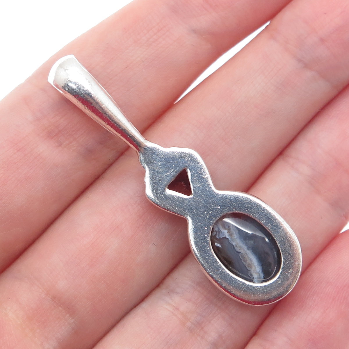 SAJEN 925 Sterling Silver Vintage Real Agate & Red Garnet Gemstone Pendant