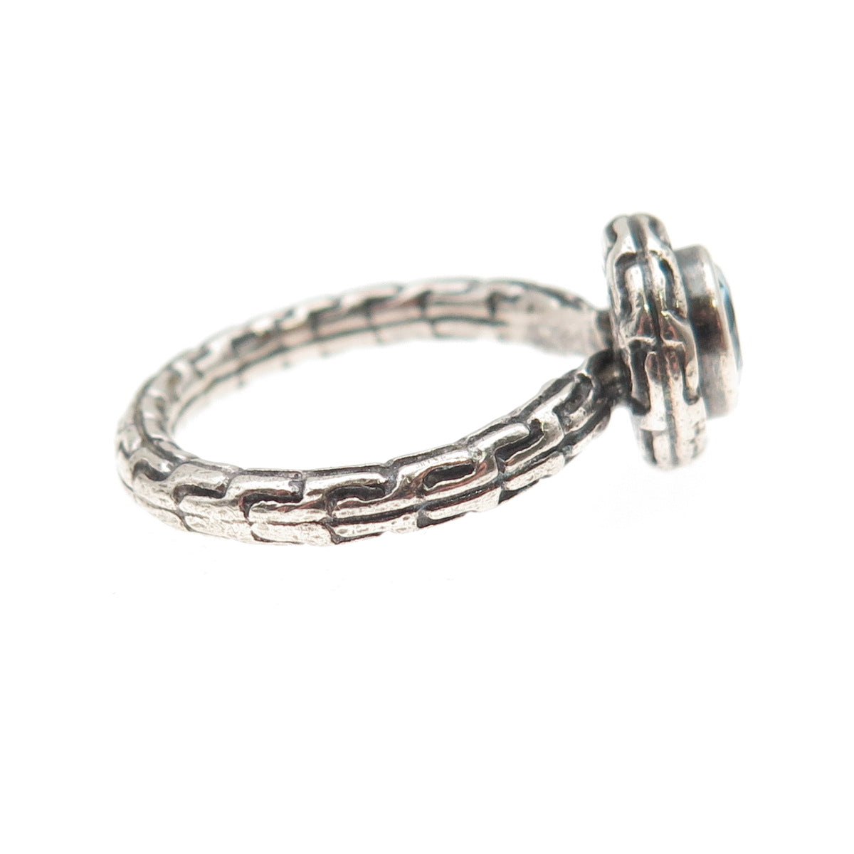 SAJEN 925 Sterling Silver Vintage Real Blue Topaz Modernist Oxidized Ring Size 6