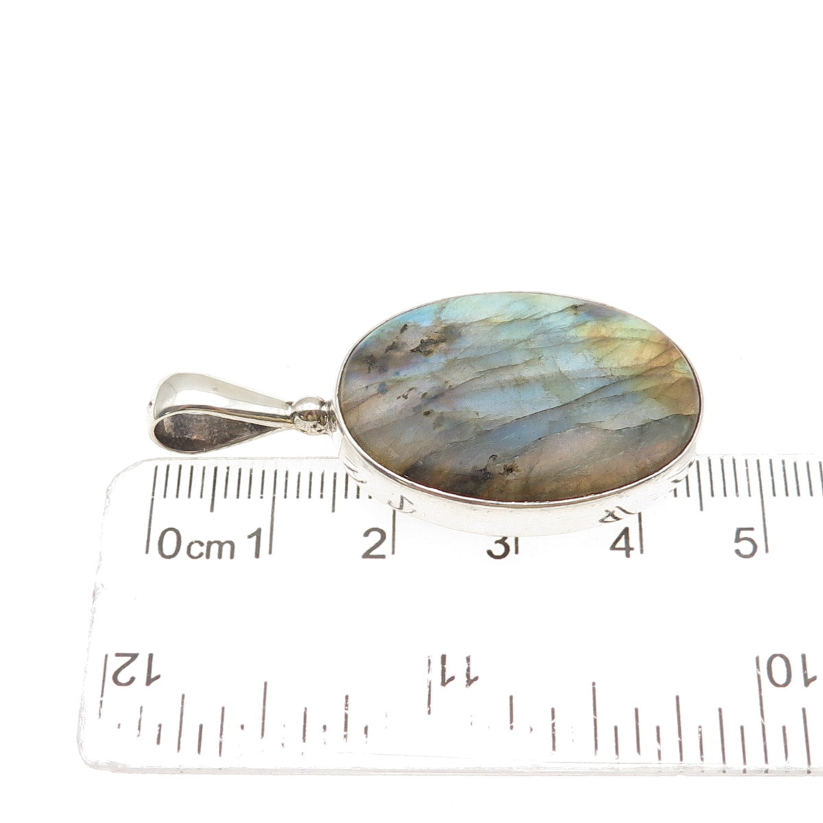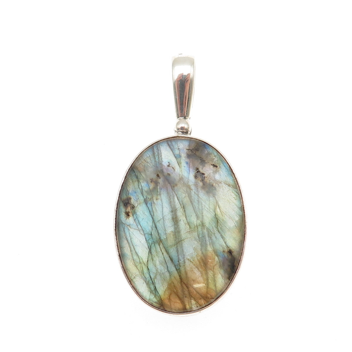SAJEN 925 Sterling Silver Vintage Real Oval-Cut Labradorite Pendant