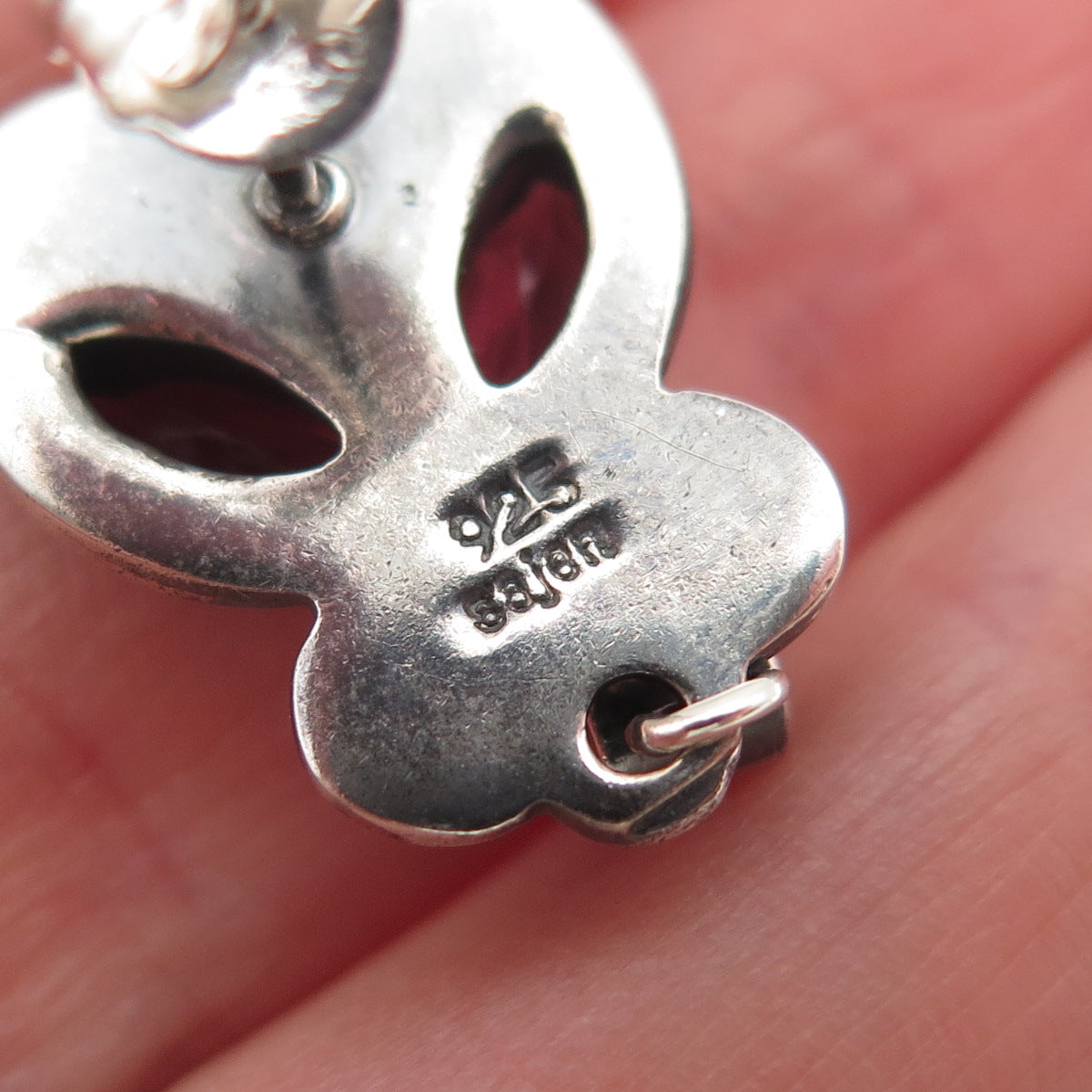 SAJEN 925 Sterling Silver Vintage Real Red Garnet & Citrine Oxidized Earrings