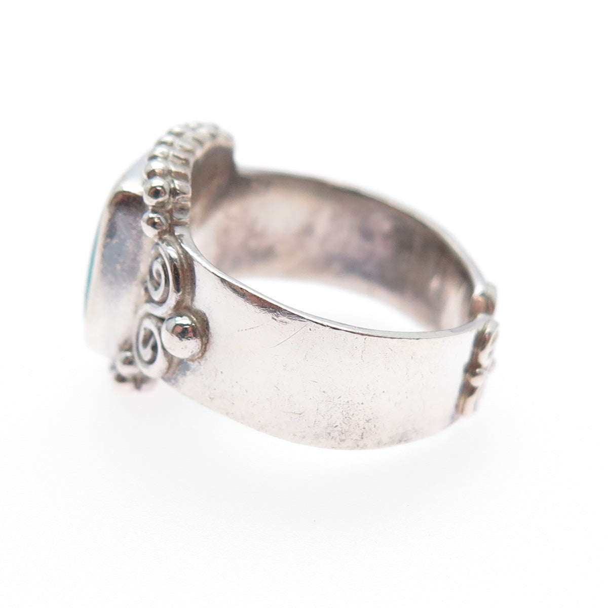 SAJEN 925 Sterling Silver Vintage Real Turquoise Spiral Adjustable Ring Size 6