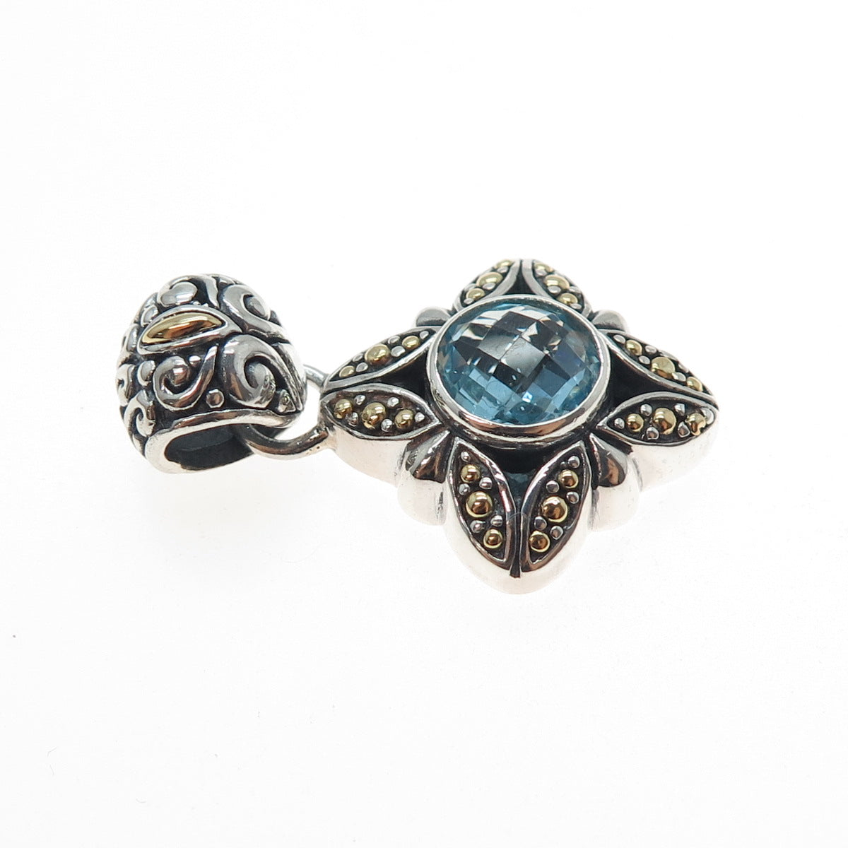 Samuel Benham 925 Sterling Silver 18K Gold Vintage Real Blue Topaz Star Pendant