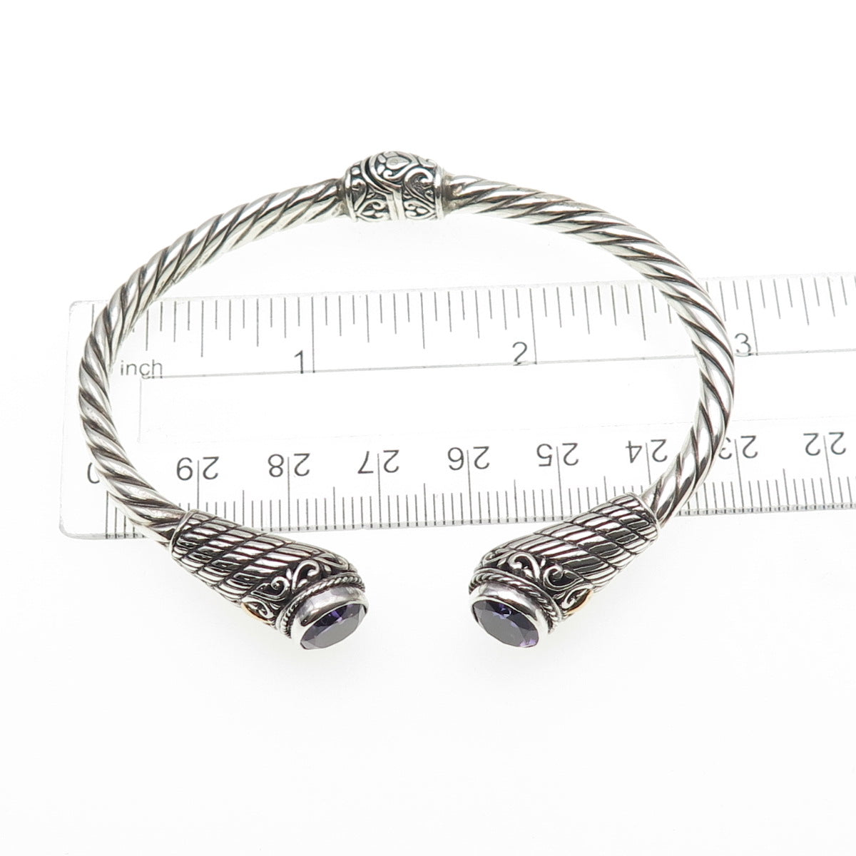 Samuel Benham Sterling 18K Gold Vintage Real Amethyst Adjustable Bracelet 6.5"