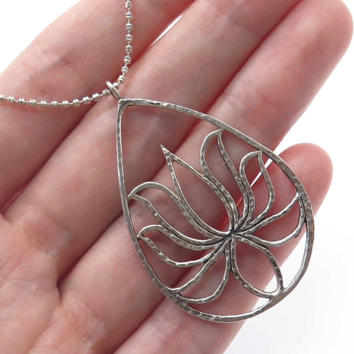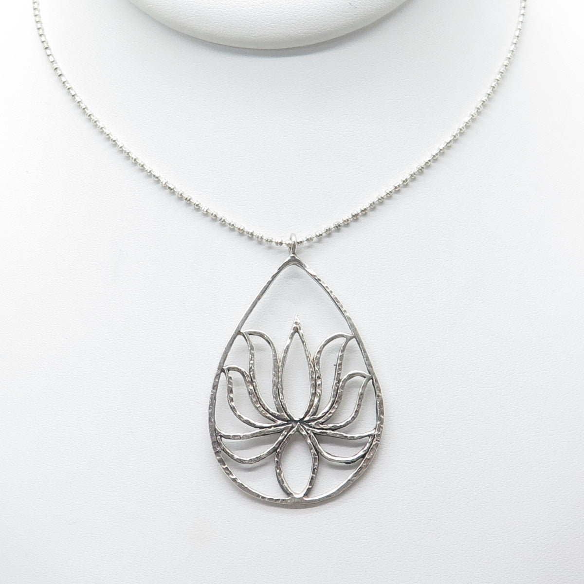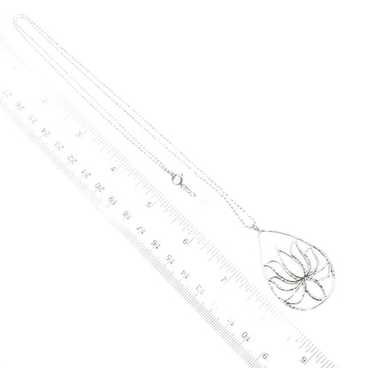 SATYA Sterling Silver Vintage Lotus Teardrop Pendant Beaded Chain Necklace 24"