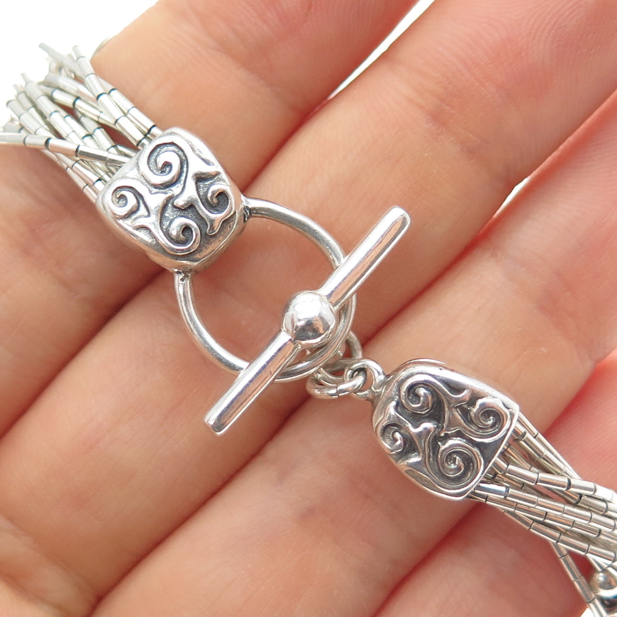 SHUBE 925 Sterling Silver Vintage Heart Multi-Strand Liquid Chain Bracelet 6.75"