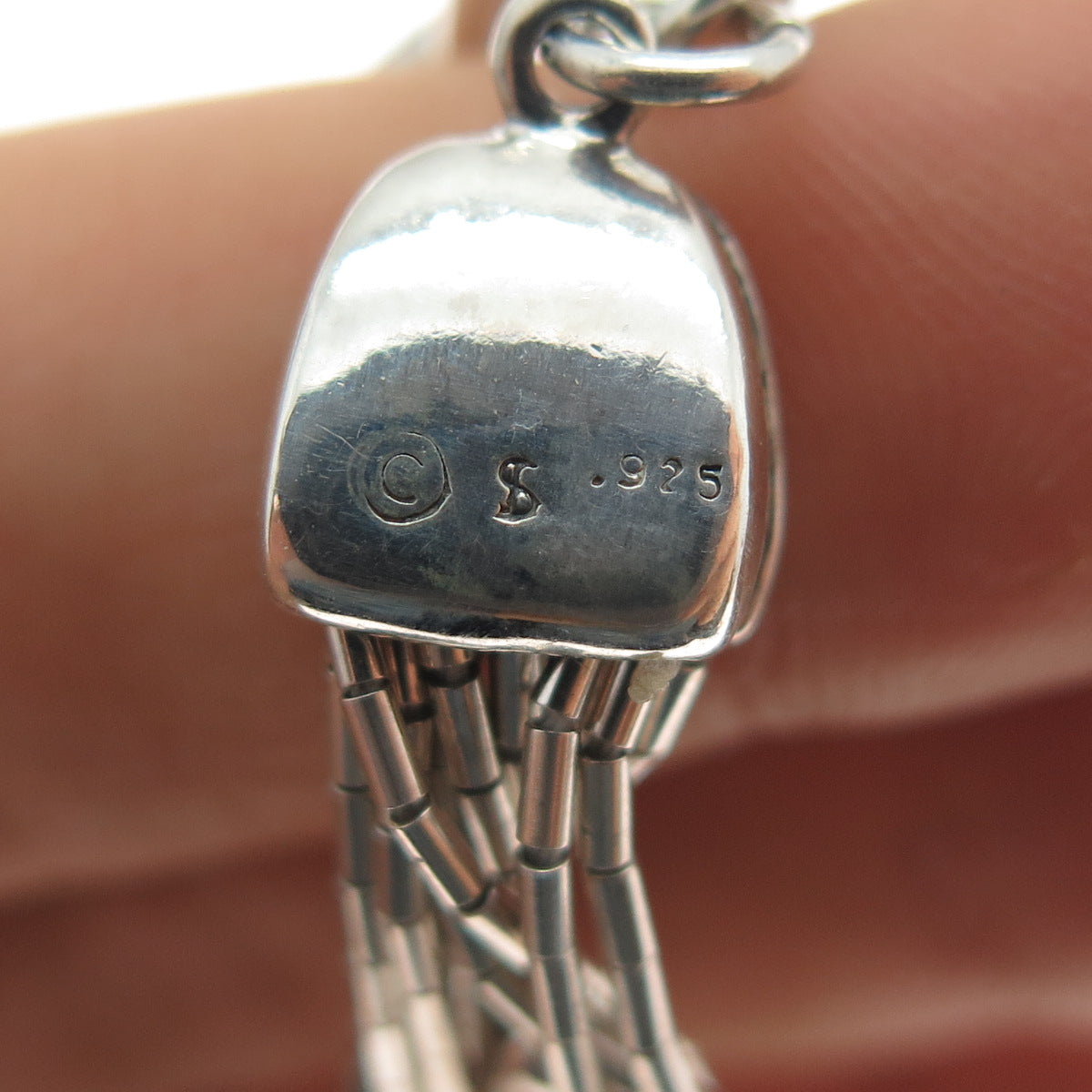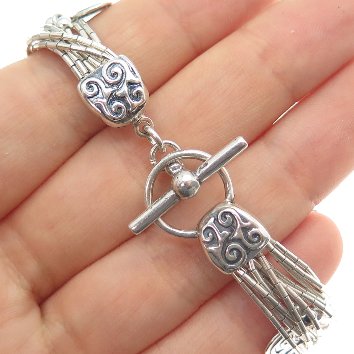 SHUBE 925 Sterling Silver Vintage Heart Multi-Strand Liquid Chain Bracelet 6.75"