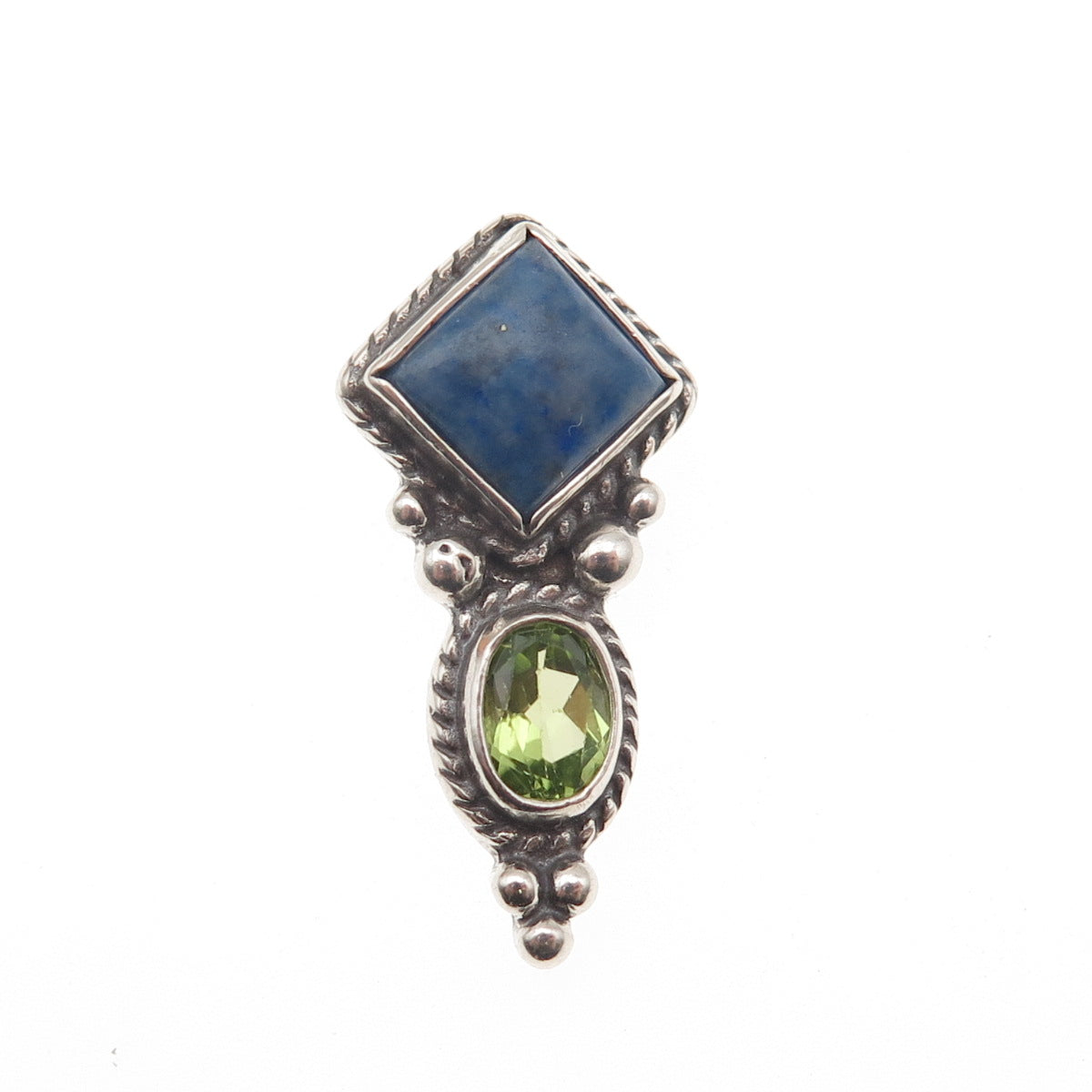 SHUBE 925 Sterling Silver Vintage Real Lapis & Peridot Slide Charm Pendant