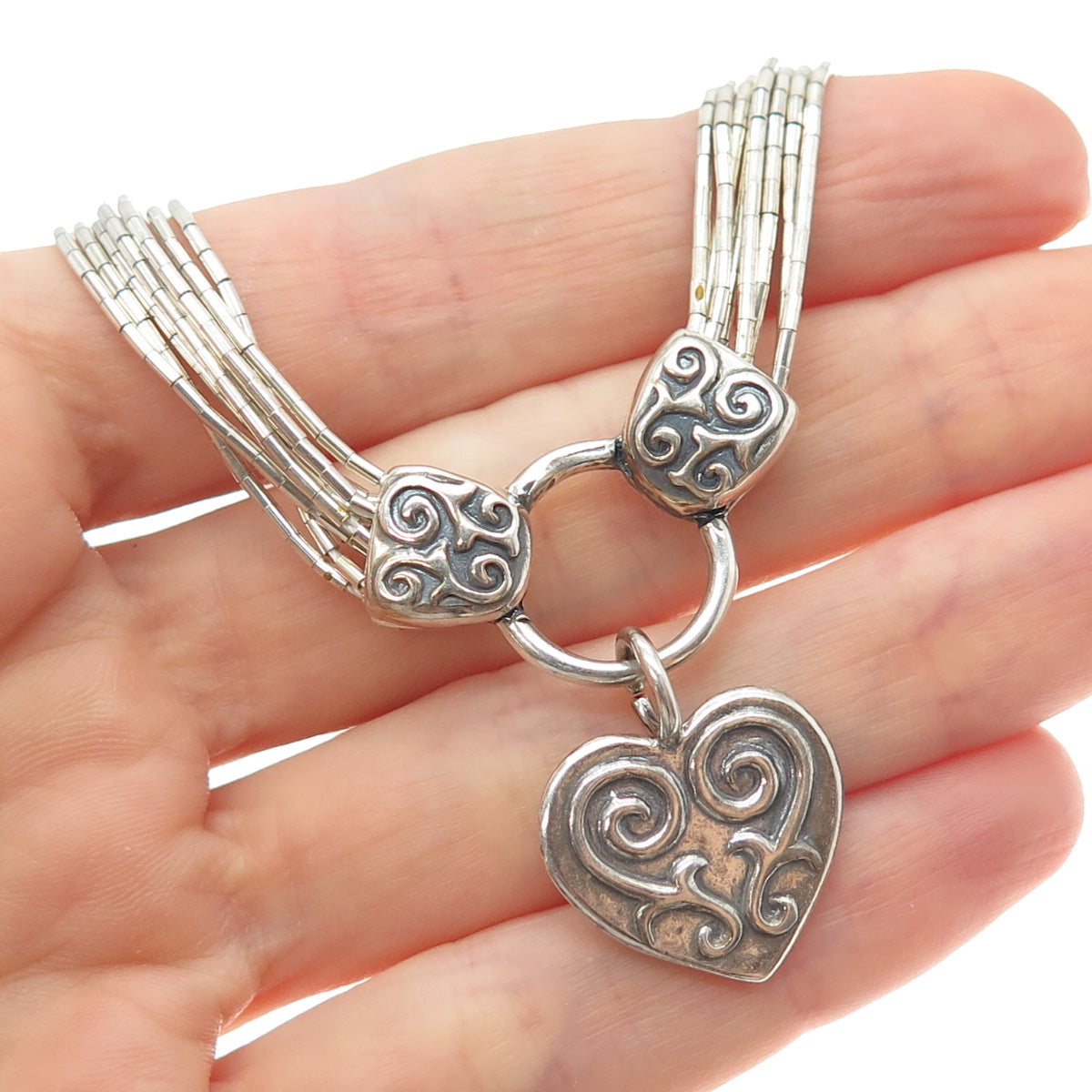 SHUBE Sterling Silver Vintage Heart Multi-Strand Liquid Chain Necklace 18-20"