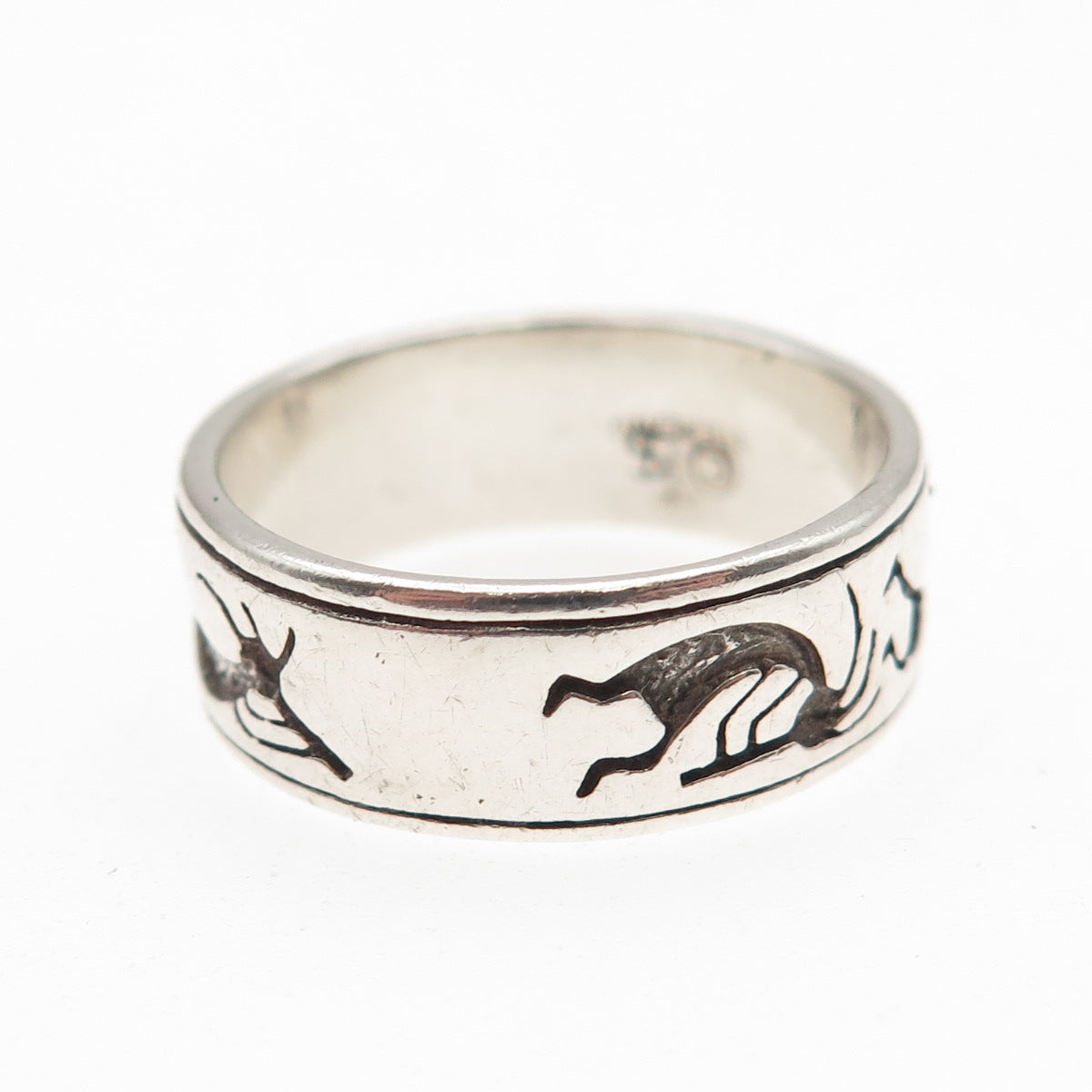 SHUBE Sterling Silver Vintage Southwestern Kokopelli Oxidized Band Ring Size 8