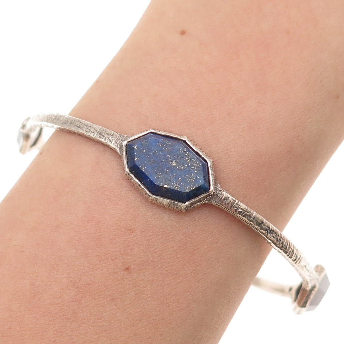 SILPADA 925 Sterling Vintage Chalcedony Lapis Starry Night Bangle Bracelet 8.25"