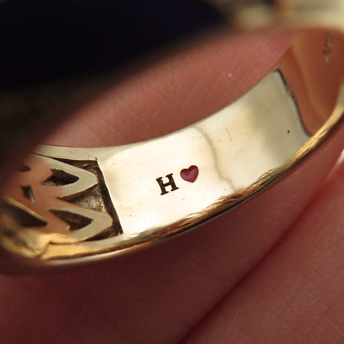 We do not disturb our vintage jewelry in order to keep its original patina leaving it to your discretion. Depending on your own taste, you can either polish it or keep it in the same condition.