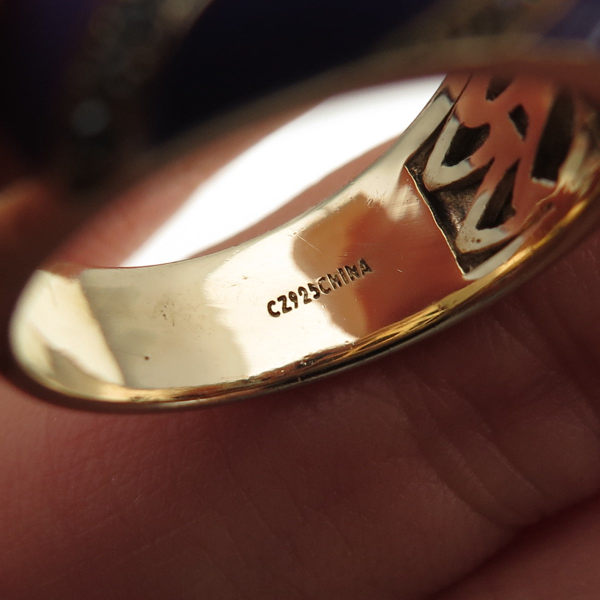 Silvio Hidalgo 925 Sterling Gold Plated Enamel Purple & White C Z Ring Size 8.25