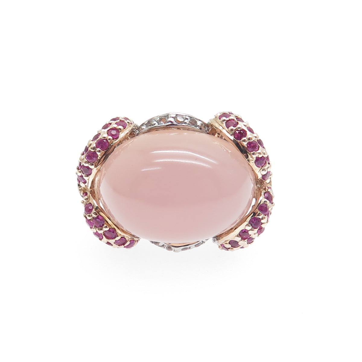 SKJ Sheridan Kennedy Sterling Rose Gold Plated Quartz Ruby Topaz Ring Size 7.25
