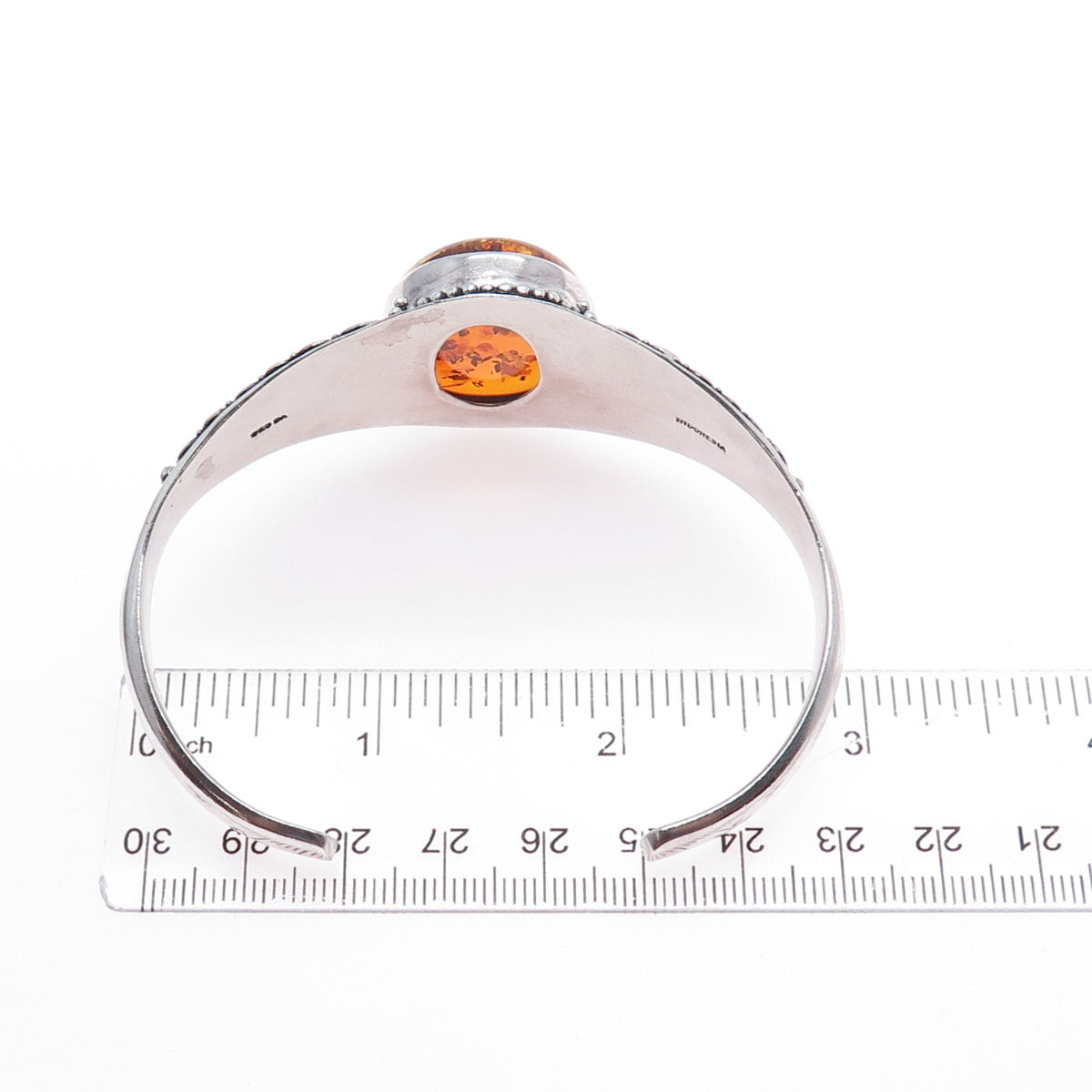 SUARTI BALI 925 Sterling Silver Vintage Real Amber Adjustable Bracelet 7.75"