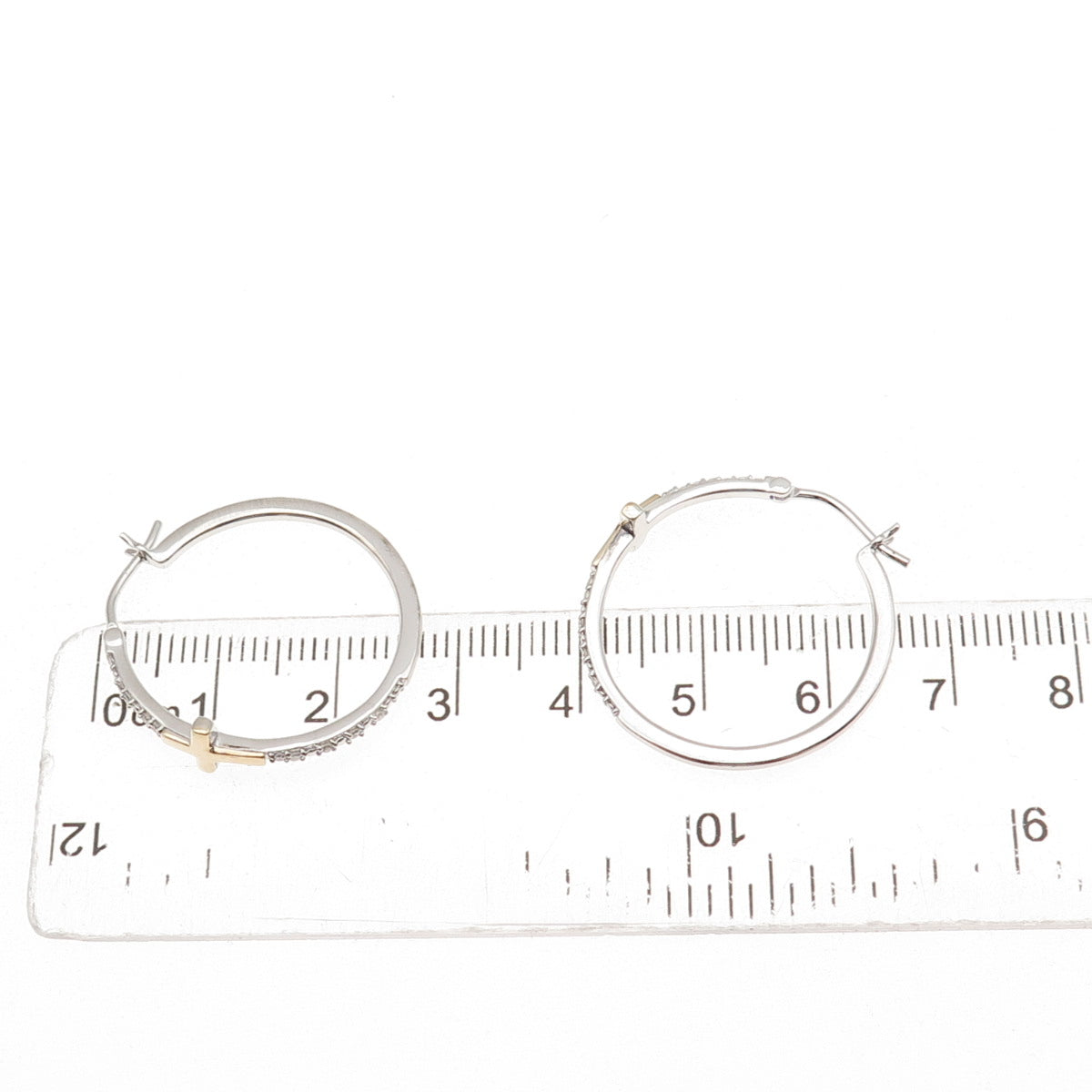 Sun 925 Sterling Silver 10K Gold Real Diamond Cross Hoop Earrings